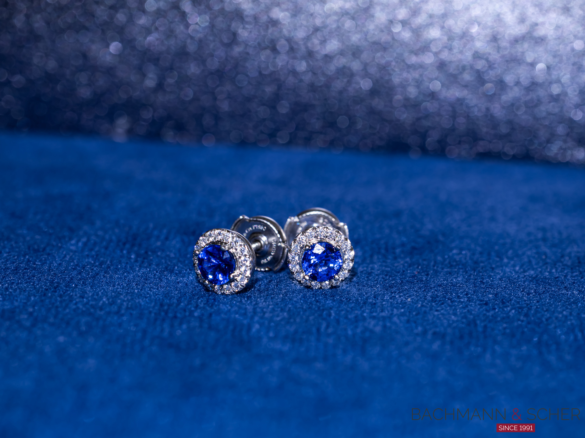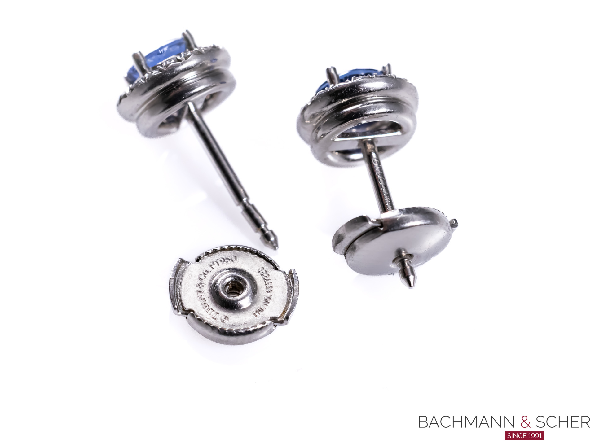 Tiffany & Co. Soleste Ear-Studs 950 Platinum 2 Sapphire 0,80ct Diamonds 0,18ct VS1-F Tiffany&Co. Pouch Diameter 8,4mm Original Retail Price €12.000,-