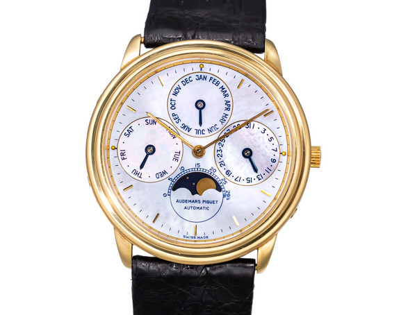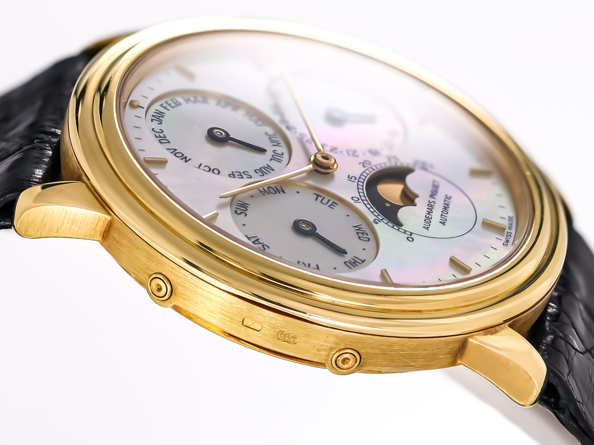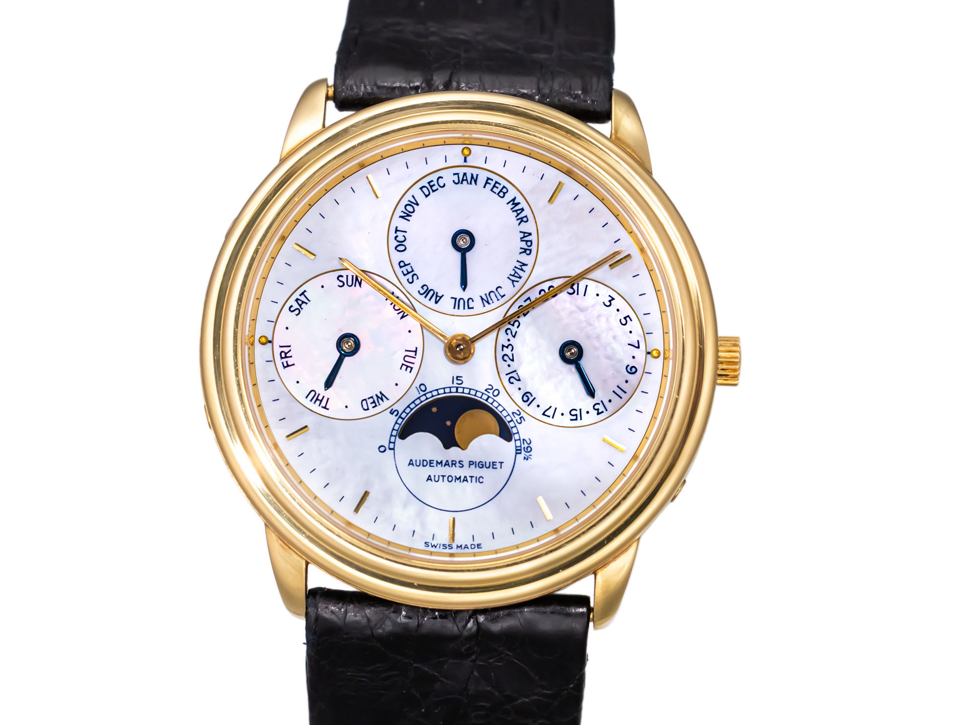 Audemars Piguet Perpetual Calendar Ref. 25657BA – 18k Yellow Gold – Mother-of-Pearl Dial – Moonphase – Box & Papers – 1988 – Excellent Condition —Rare Example