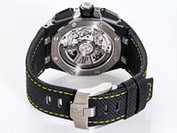 Inside, the watch is powered by the new generation in-house automatic caliber 4401, featuring an integrated column wheel flyback chronograph, visible through the sapphire caseback.