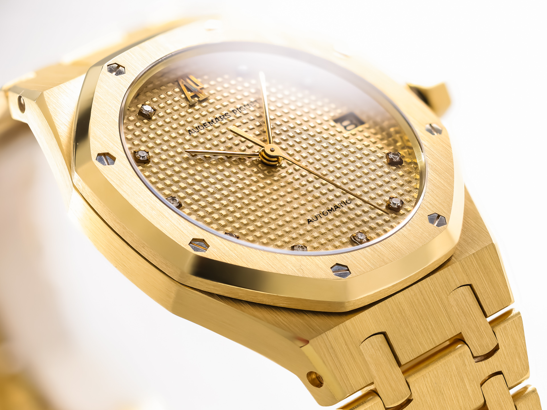 Audemars Piguet Royal Oak “Mini Jumbo” 36 mm – Ref. 14700BA – 18k Yellow Gold – Diamond Dial – 1990 – Excellent Condition