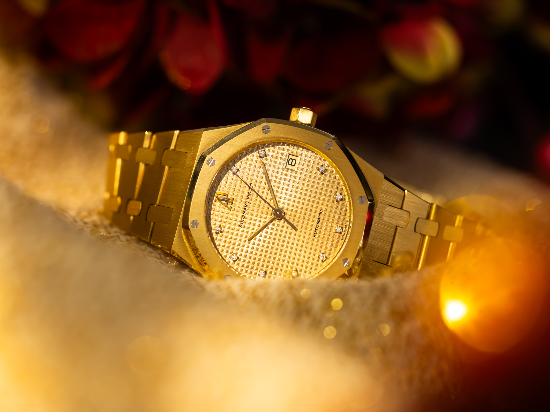 "With its rare full-gold construction, elegant 36 mm proportions, and diamond-set dial, this Ref. 14700BA stands as a beautifully preserved example of early luxury Royal Oak production — a superb acquisition for collectors seeking a distinguished and increasingly scarce neo-vintage AP!“