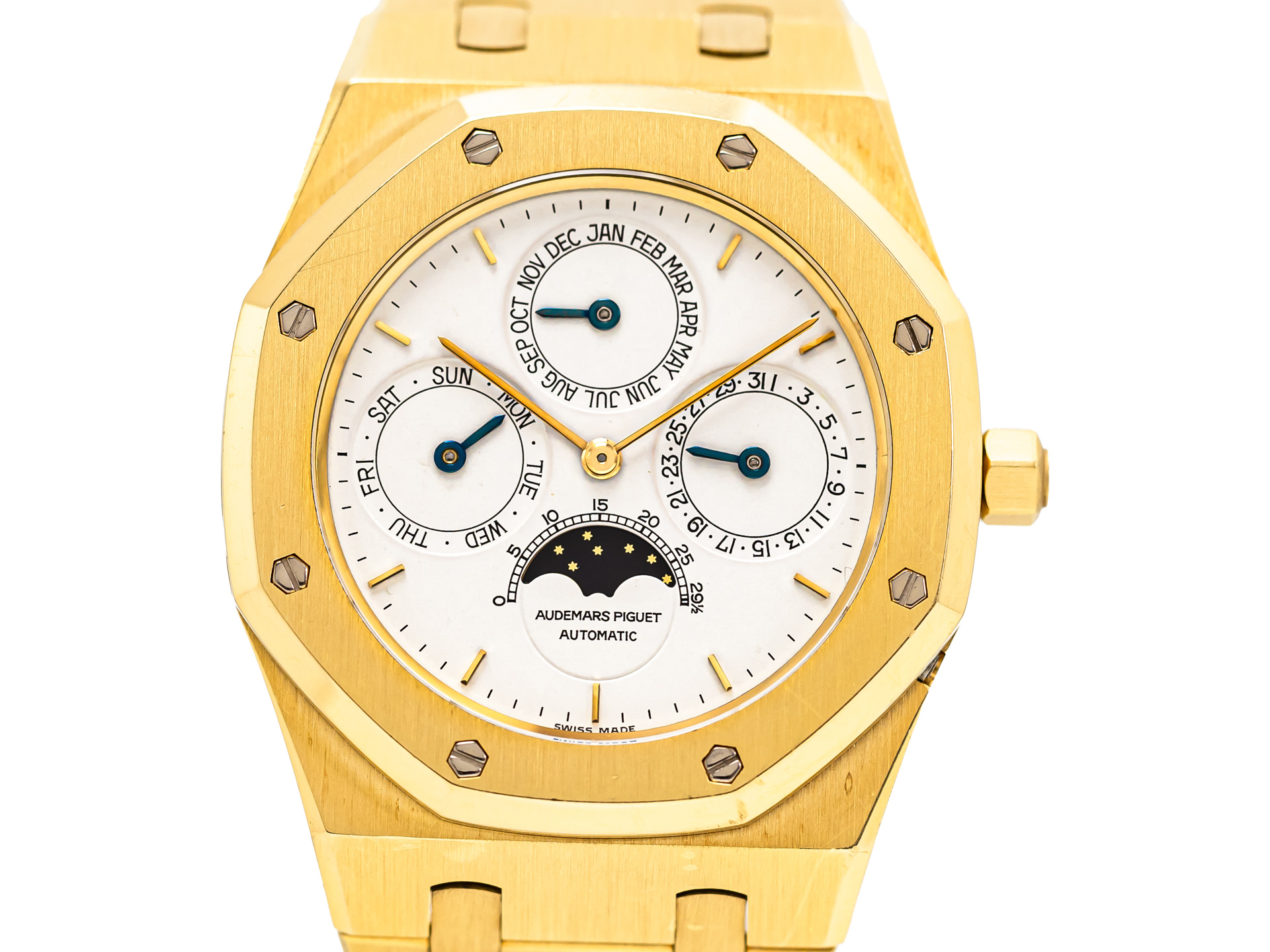 Audemars Piguet Vintage Royal Oak Perpetual Calendar – 18k Yellow Gold – Moonphase – Turning Display Box – 1993 – Box & Papers – AP Service 2022 – Rare