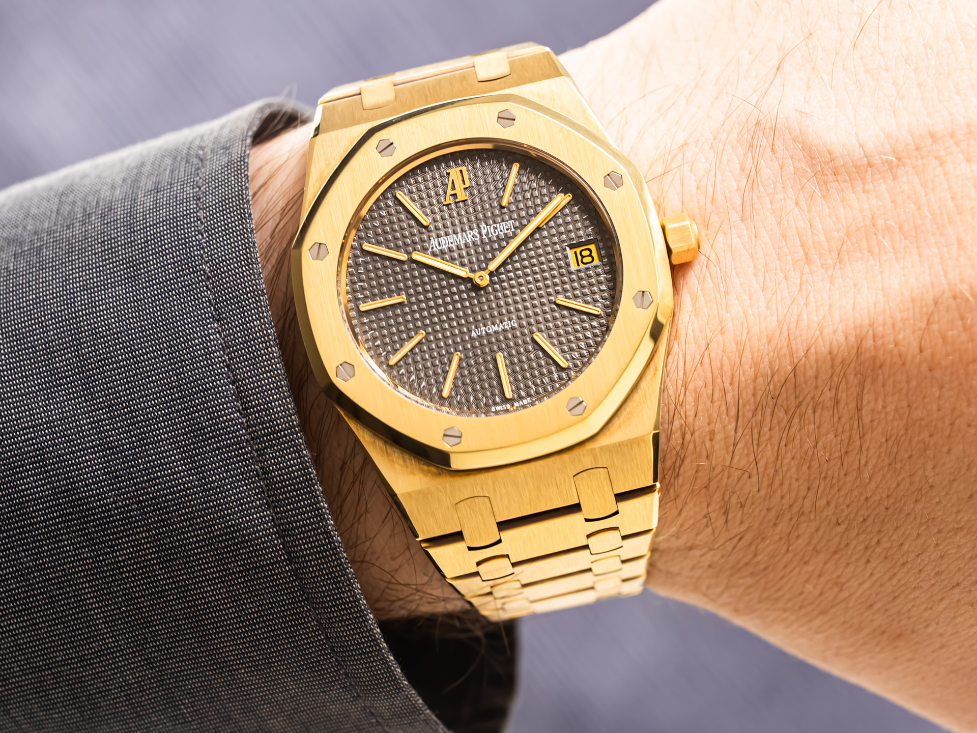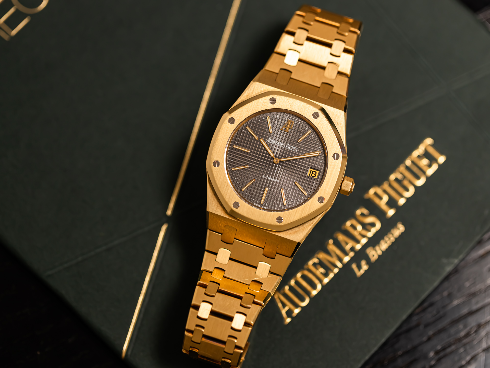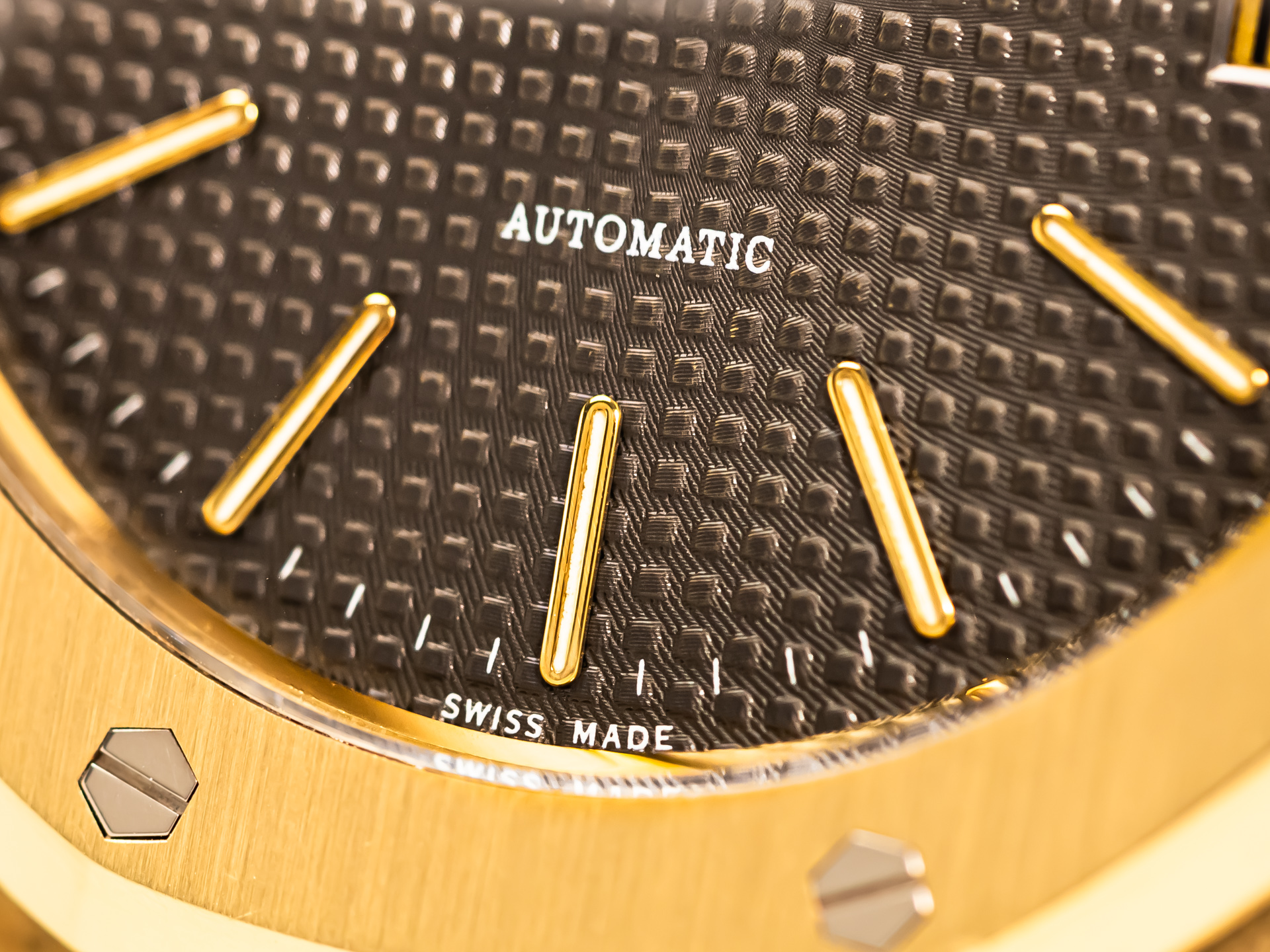 This particularly beautiful ROYAL OAK has got a gorgeous anthracite grey tapisserie tritium dial with perfect vintage look.