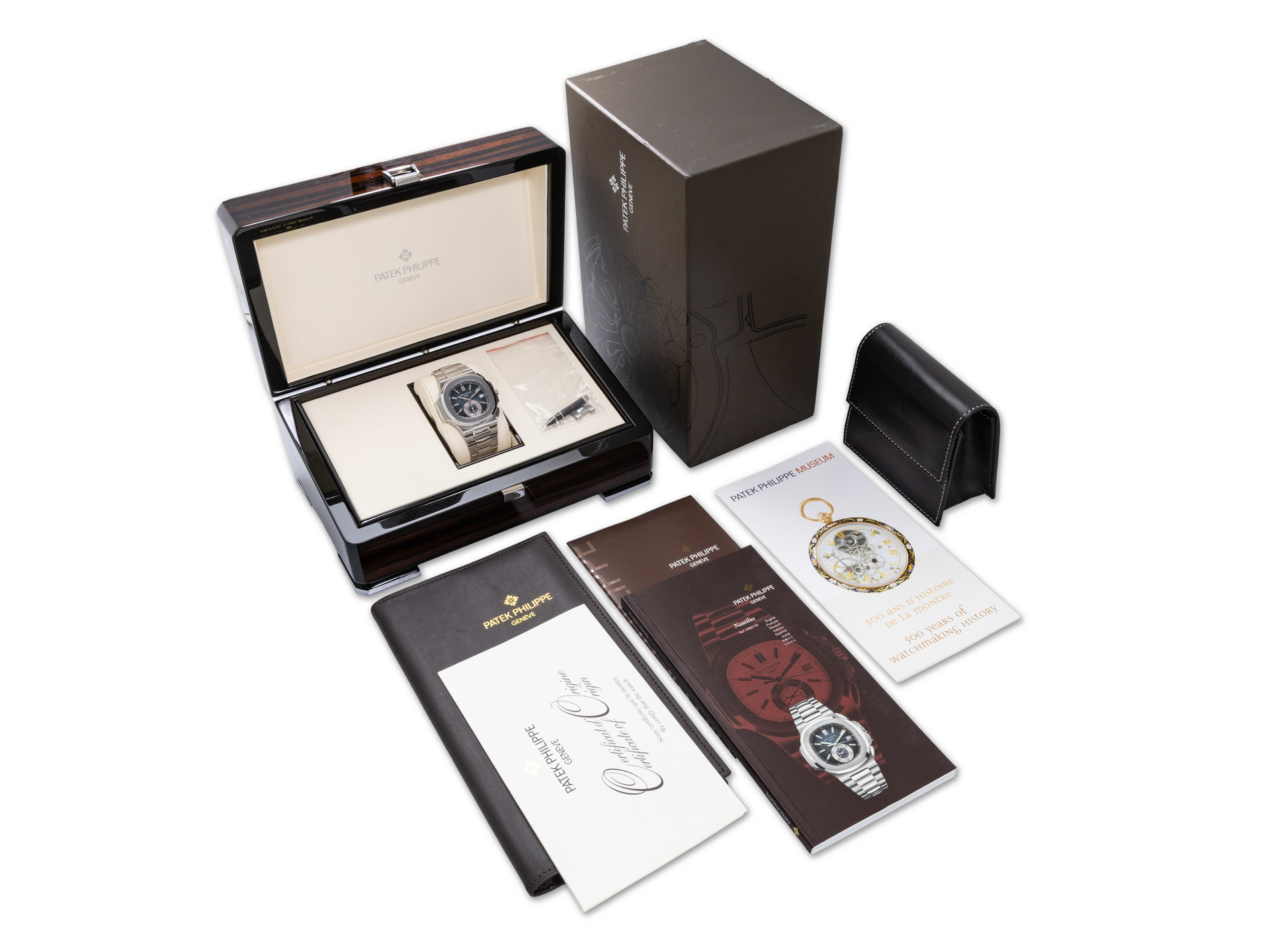 This Patek Philippe Nautilus Chronograph Ref. 5980/1A-001 is offered with: