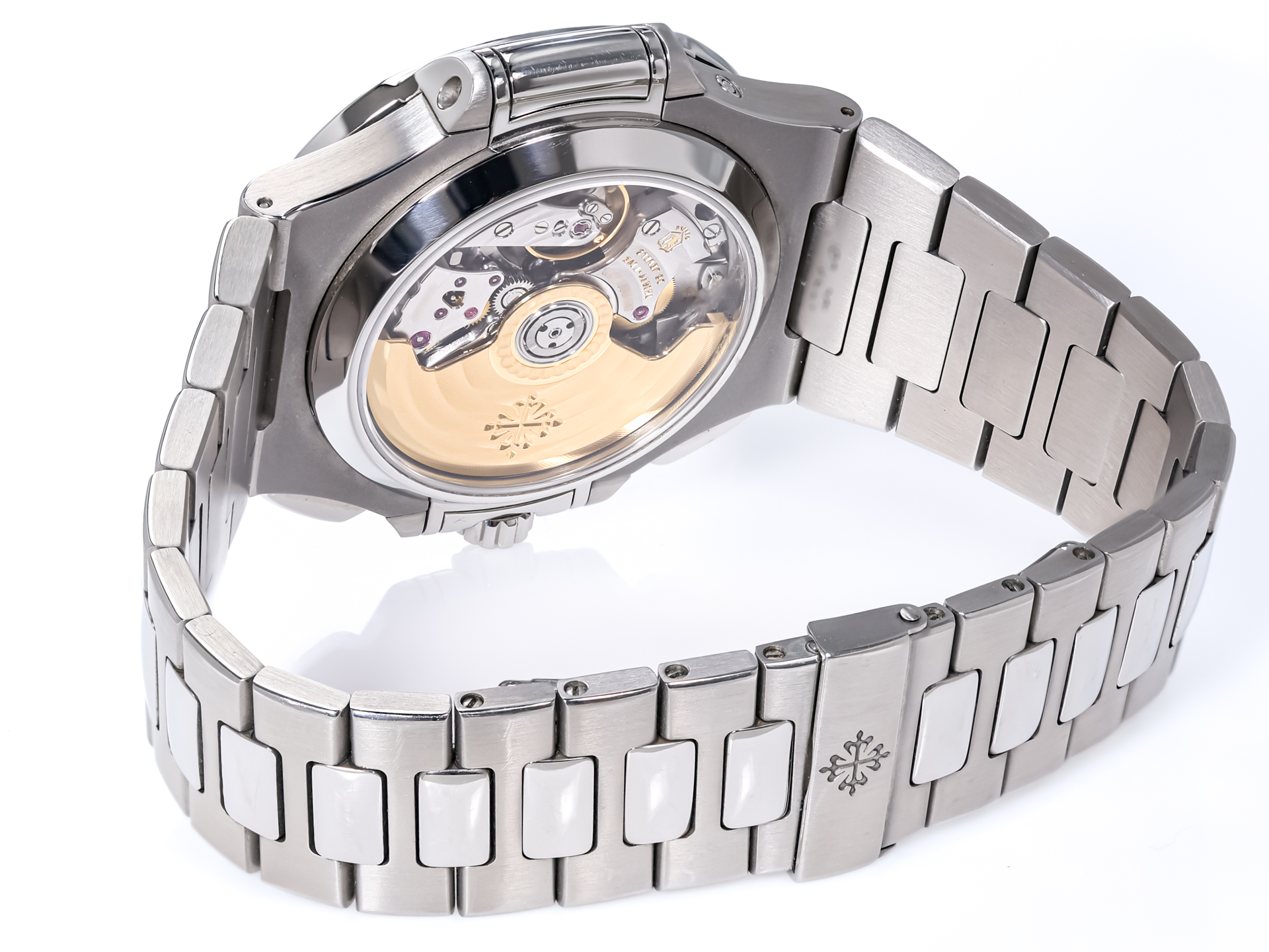 Powering the watch is the in-house automatic caliber CH 28-520 C, the first chronograph movement entirely developed and manufactured by Patek Philippe for the Nautilus collection. This sophisticated movement features a column wheel and vertical clutch system, ensuring smooth chronograph operation, high precision, and exceptional reliability. Visible through the sapphire crystal case back, the movement showcases the refined finishing standards for which the manufacture is renowned.