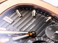 The centerpiece of this model is without question the striking brown sunburst dial, shifting effortlessly between rich espresso and warm bronze tones depending on the light. The signature off-center subdials—power reserve indicator, small seconds, and moon-phase/date - create the distinct visual harmony that defines the 5712, making each glance at the wrist a compelling aesthetic experience.