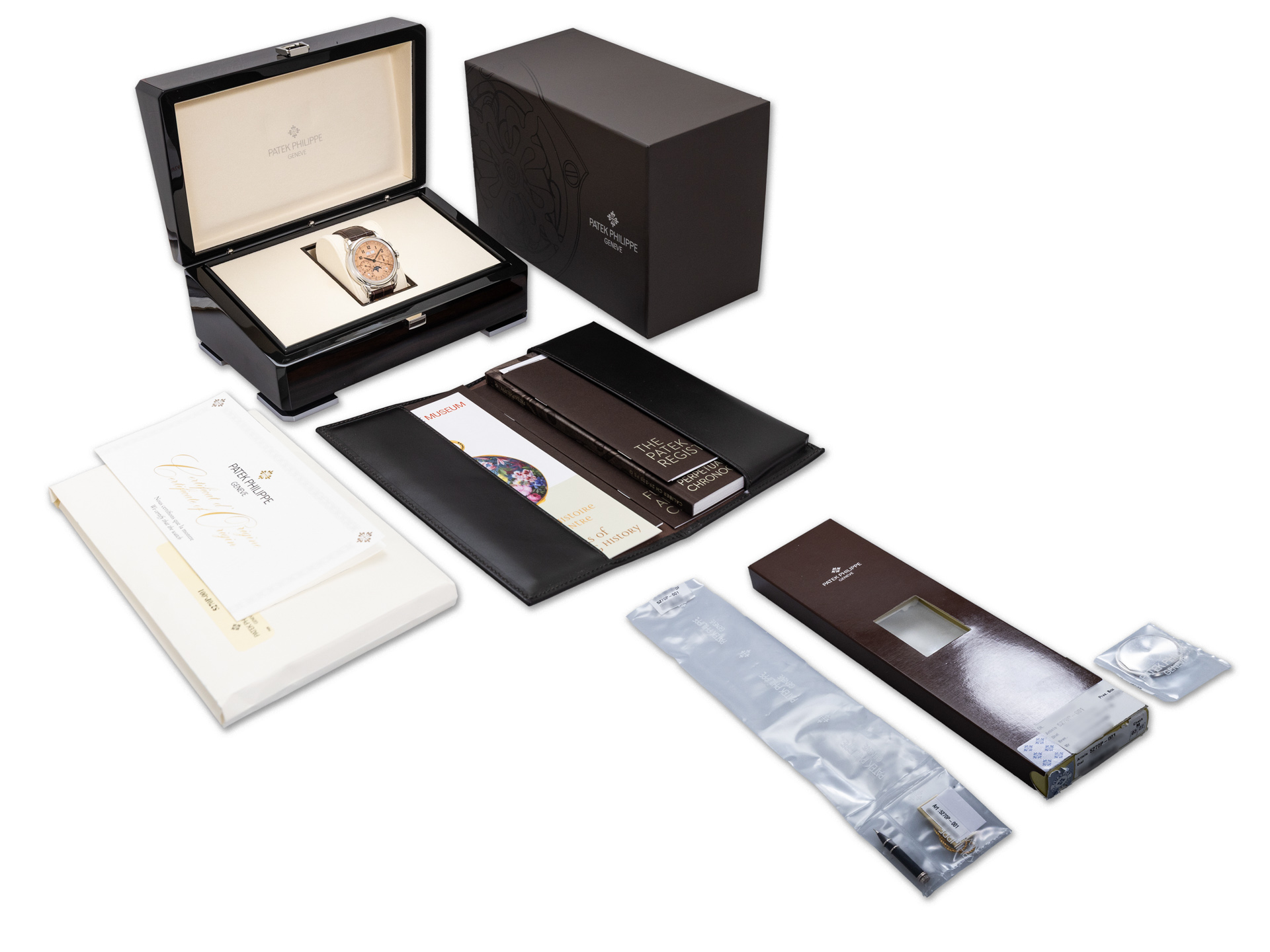 An exceptional opportunity to acquire a full-set, platinum 5270P with salmon dial — one of the most desirable contemporary Patek Philippe complications.