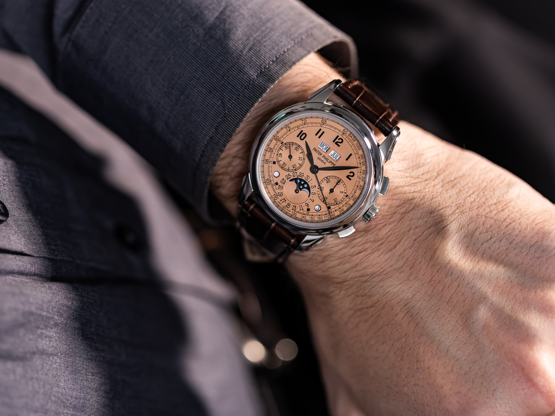 An exceptional opportunity to acquire a full-set, platinum 5270P with salmon dial — one of the most desirable contemporary Patek Philippe complications.