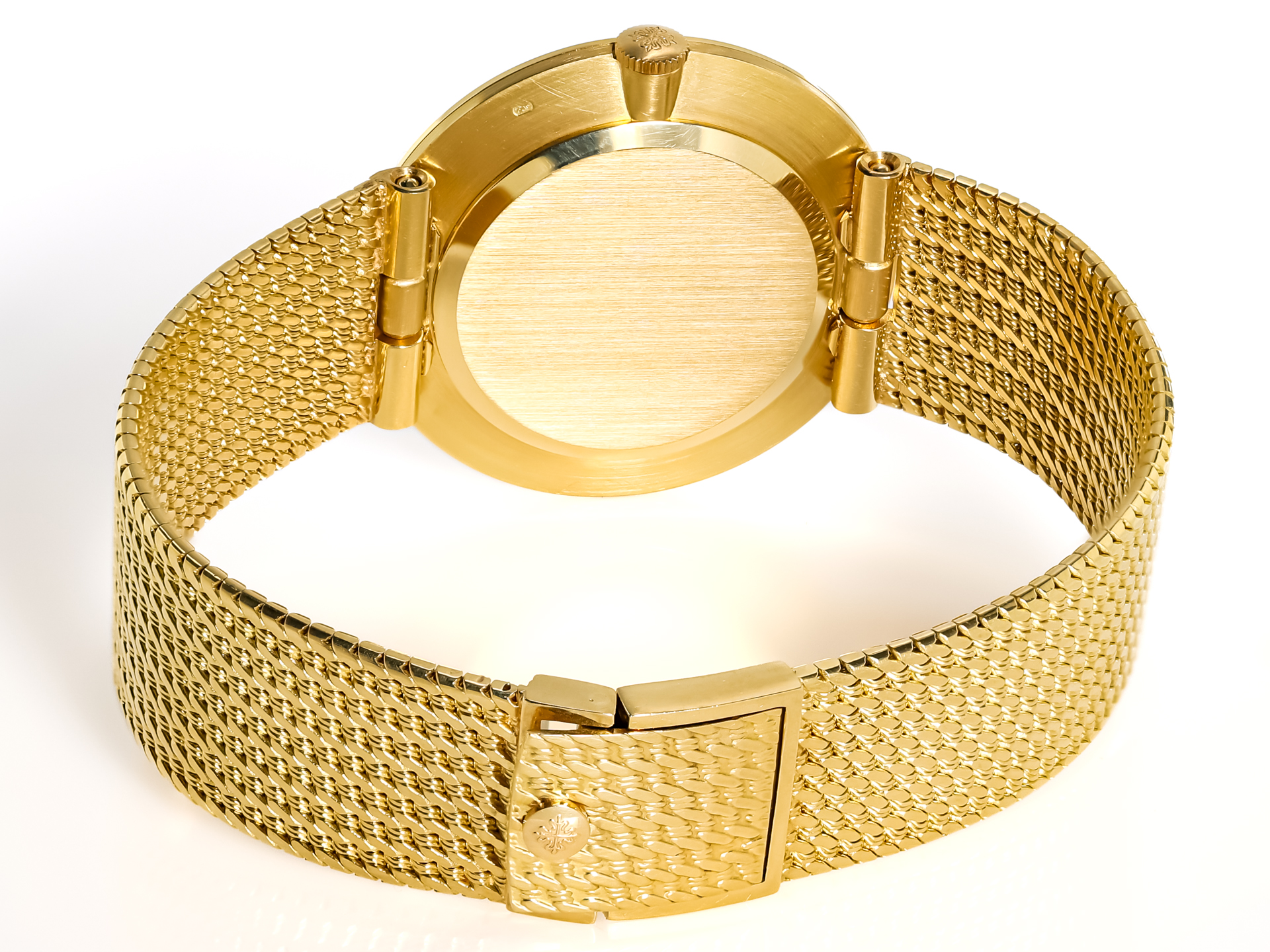 PATEK PHILIPPE Vintage CALATRAVA 18k Yellow Gold Milanese Bracelet Box Papers Bj-1973 Excellent