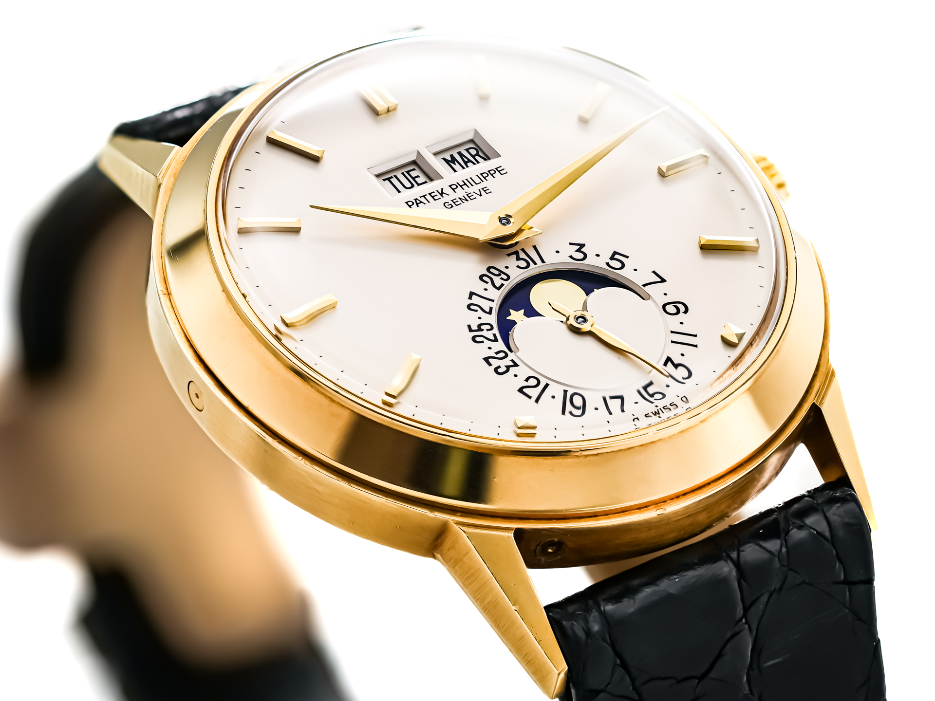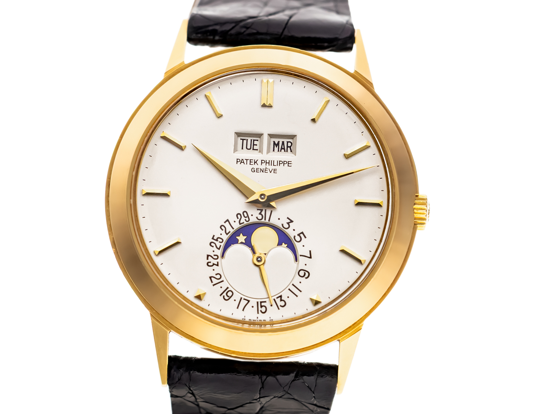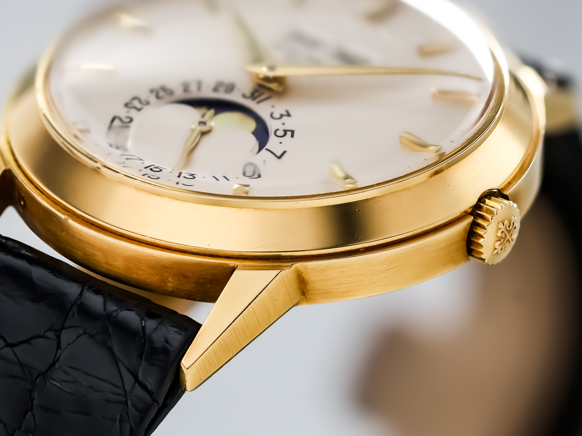 We are very proud to offer you this unpolished PATEK PHILIPPE vintage PERPETUAL CALENDAR moon-phase Ref.3448 in 18k yellow gold with croco strap and original gold pin buckle.