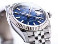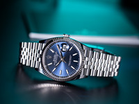 The focus is on the deep blue dial, which develops fascinating colour nuances depending on the incidence of light, giving the watch an extraordinary depth and elegance. The applied hour markers and the precise workmanship of the dial underline the high manufacturing quality for which Rolex is renowned worldwide.