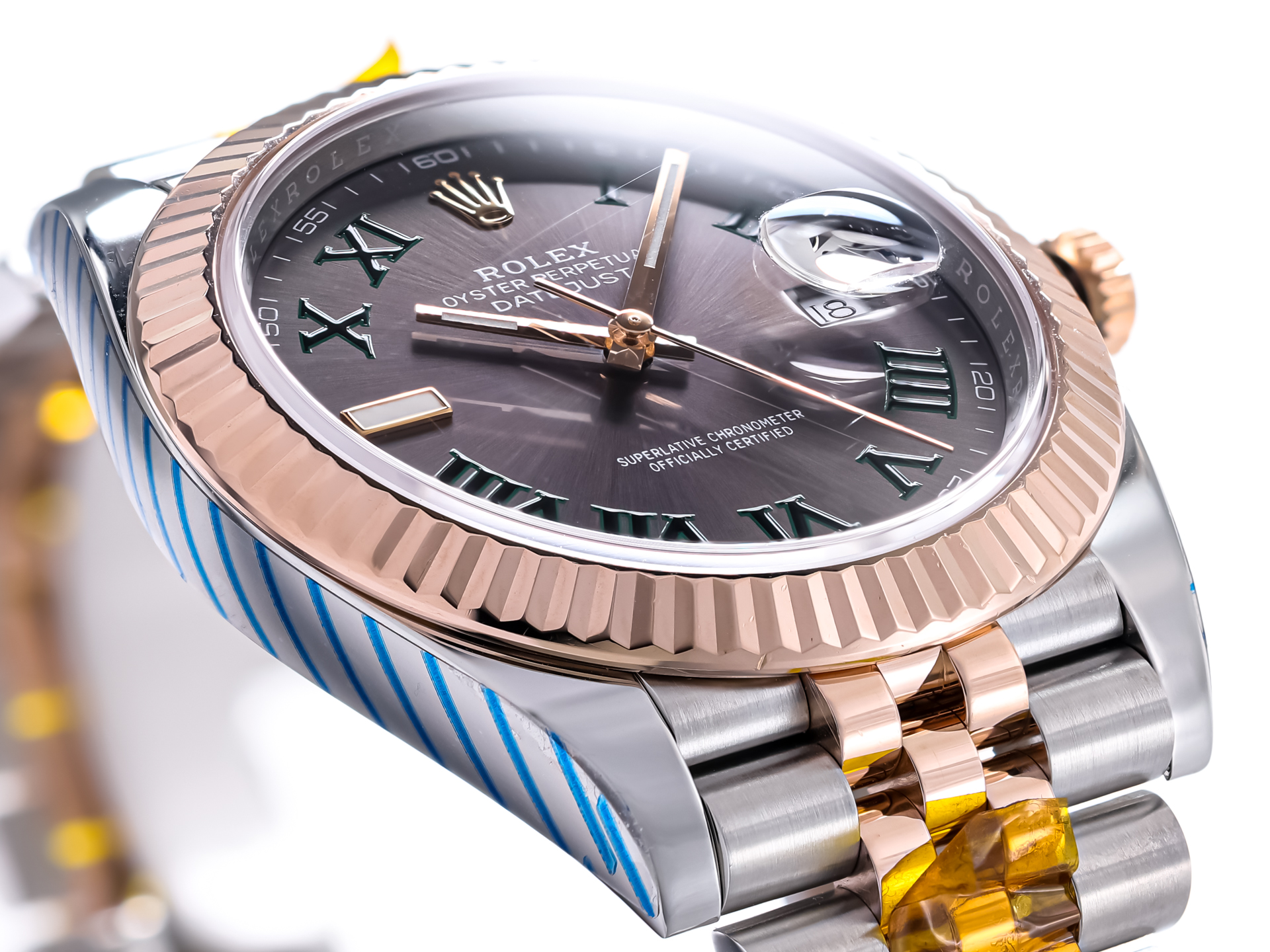 The timepiece is fitted with the elegant Jubilee bracelet in Oystersteel and Everose gold, equipped with the robust Oysterclasp and Easylink comfort extension system. The five-piece link construction ensures exceptional wearing comfort while maintaining the model’s sophisticated and balanced aesthetic.