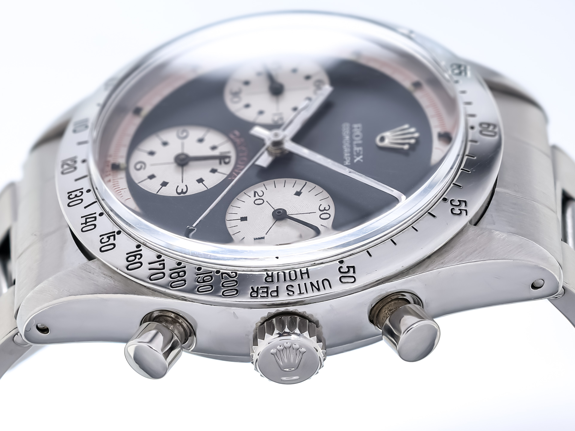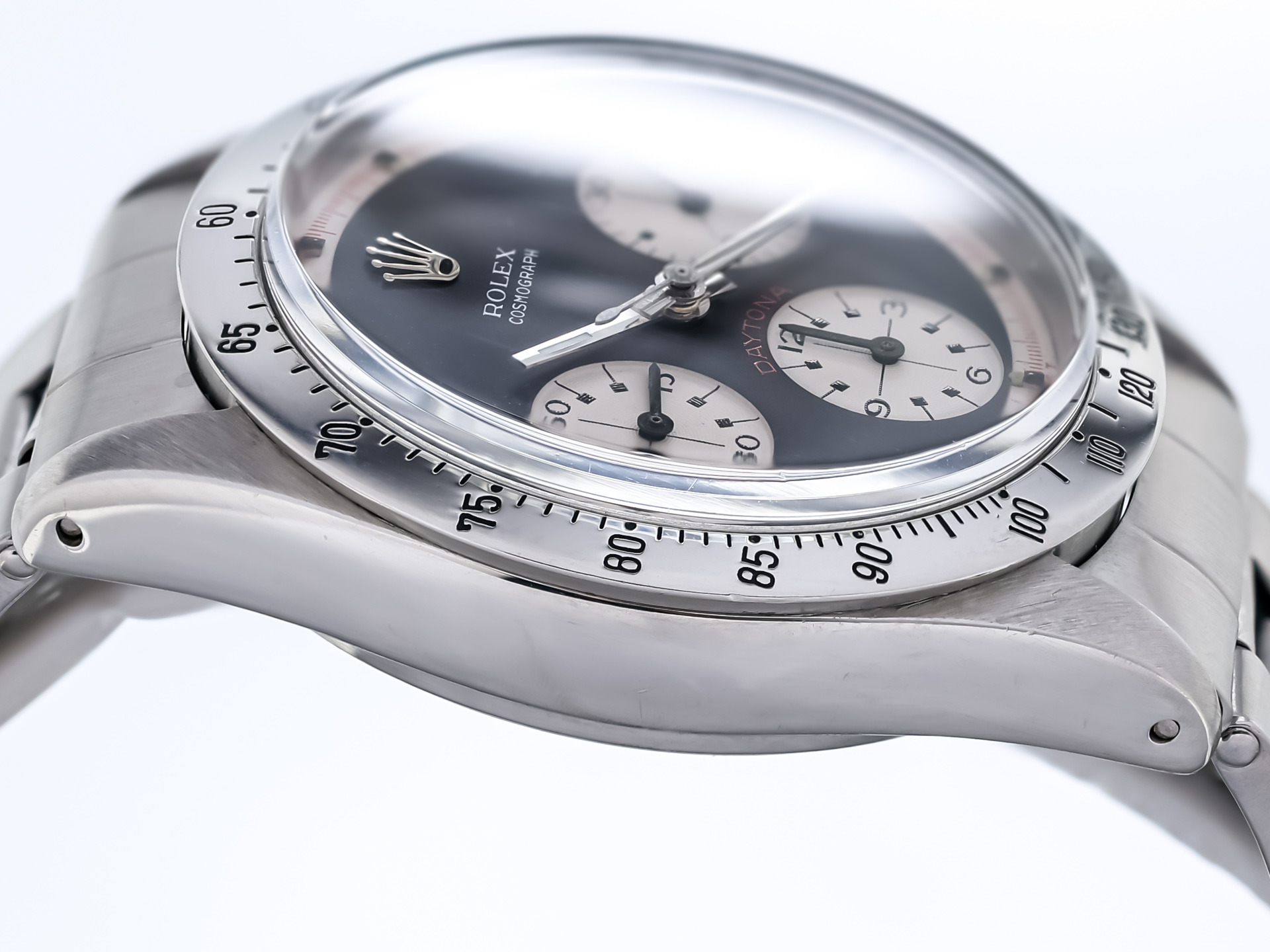 ROLEX COSMOGRAPH DAYTONA “PAUL NEWMAN” — Ref. 6239 – Stainless Steel – Black Exotic Tritium Dial – Box – 1968