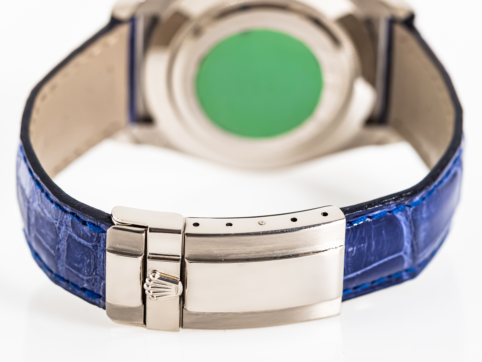 The white gold Daytona Ref. 16519 with Zenith movement was produced for approximately 18 months only (late 1998–1999), before Rolex transitioned to their in-house caliber 4130. This extremely short production window, combined with the exotic stone dial, elevates this model into the realm of true modern Rolex grails.