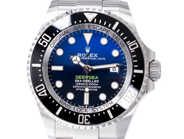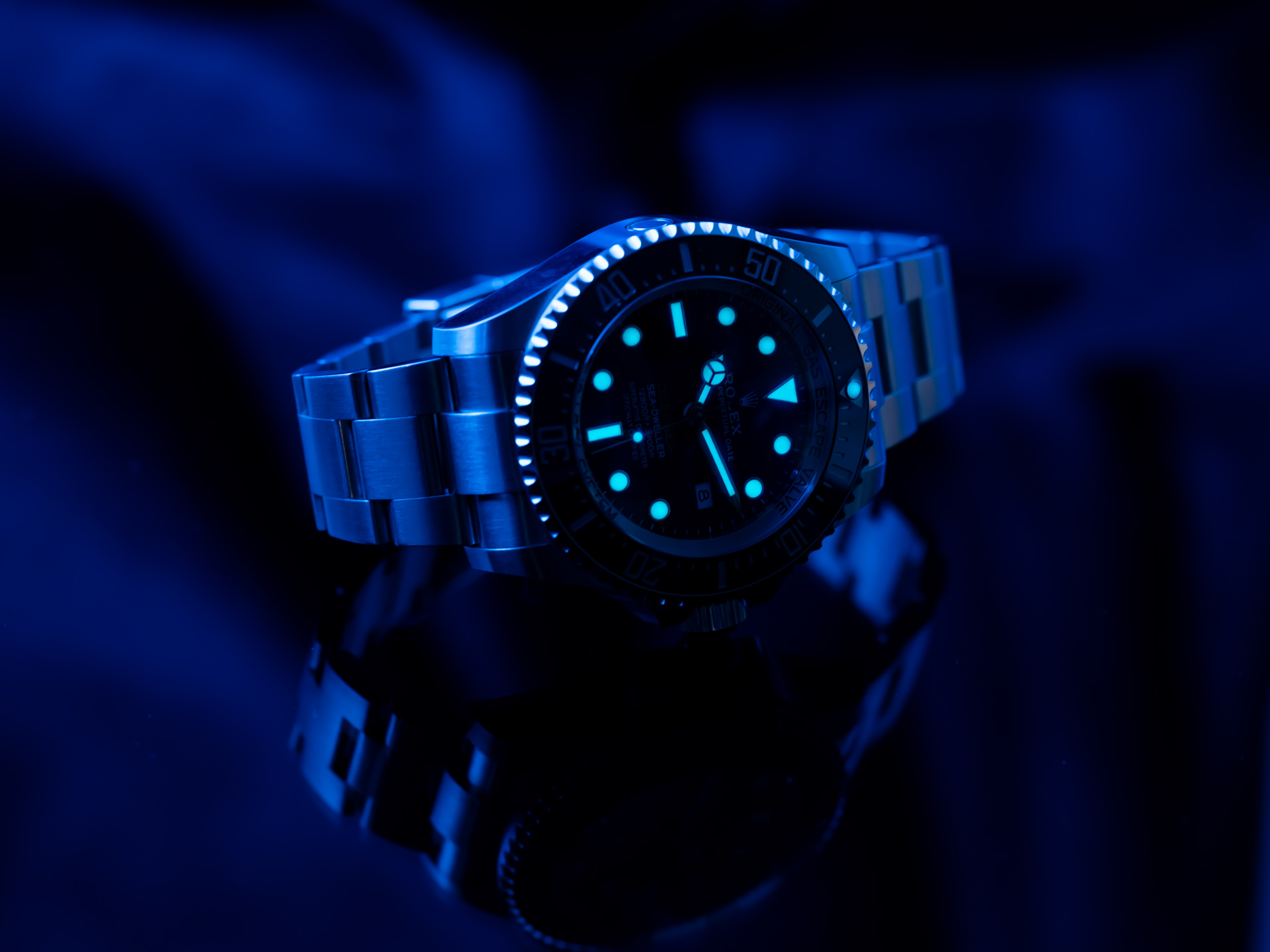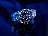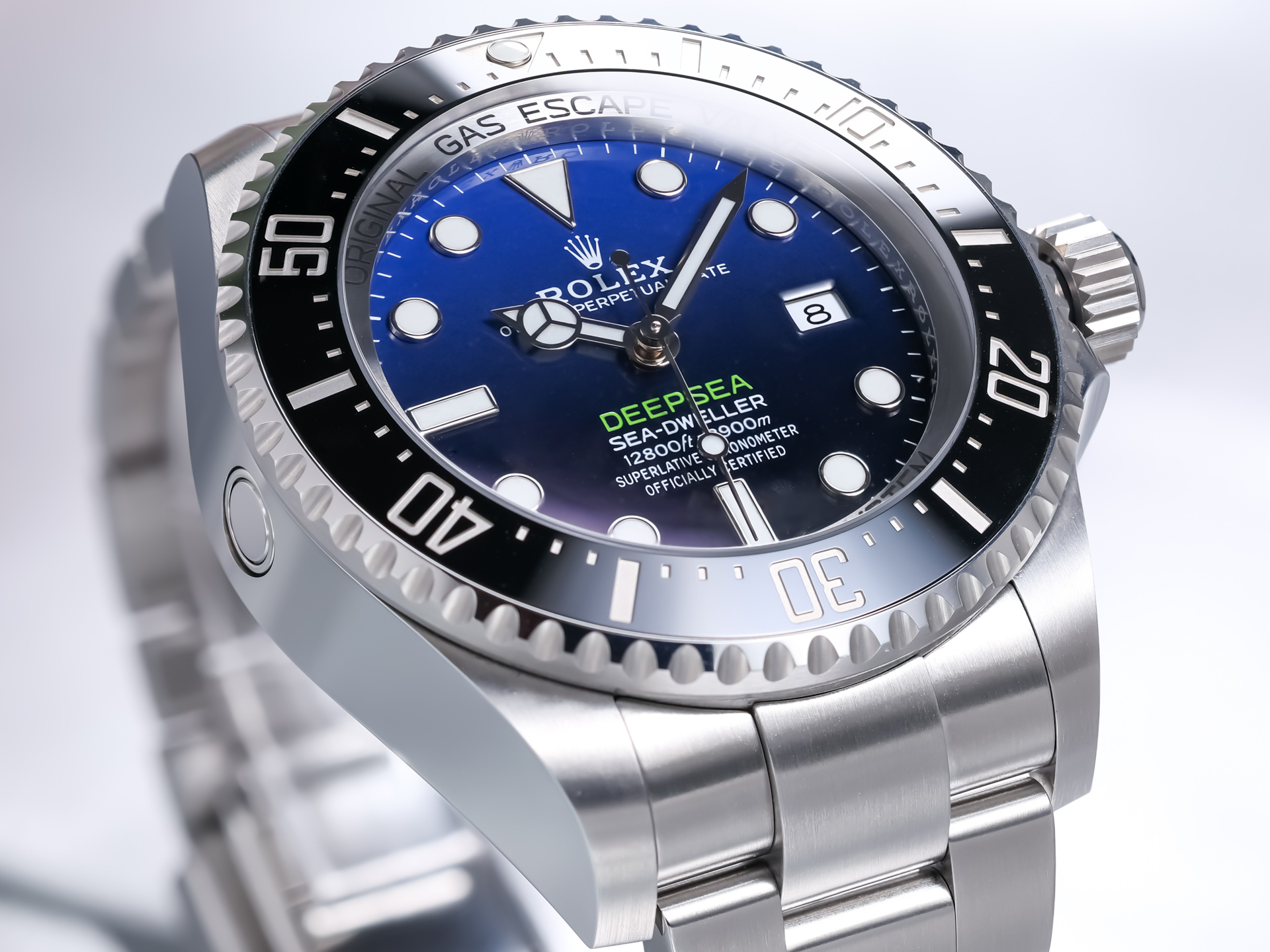 Launched to commemorate filmmaker and explorer James Cameron’s historic 2012 solo dive to the Mariana Trench, this special Deepsea edition stands out with its striking “D-Blue” gradient dial — fading from deep blue to black — symbolizing the ocean’s descent into the depths. The dial is complemented by bold Chromalight-filled hour markers and hands for maximum legibility in any environment.
