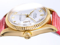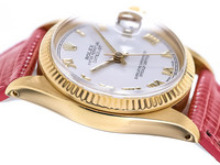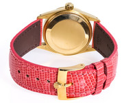 - Fitted with a pink lizard leather strap and gold plated Rolex pin buckle