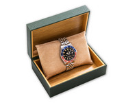 Produced in 1963, this exceptional piece features the coveted “Pepsi” bezel in red and blue, paired with a rare gilt tritium dial—attributes that place it among the most collectible configurations of the reference. Preserved in excellent vintage condition, it represents a true connoisseur’s example from the golden era of Rolex.
