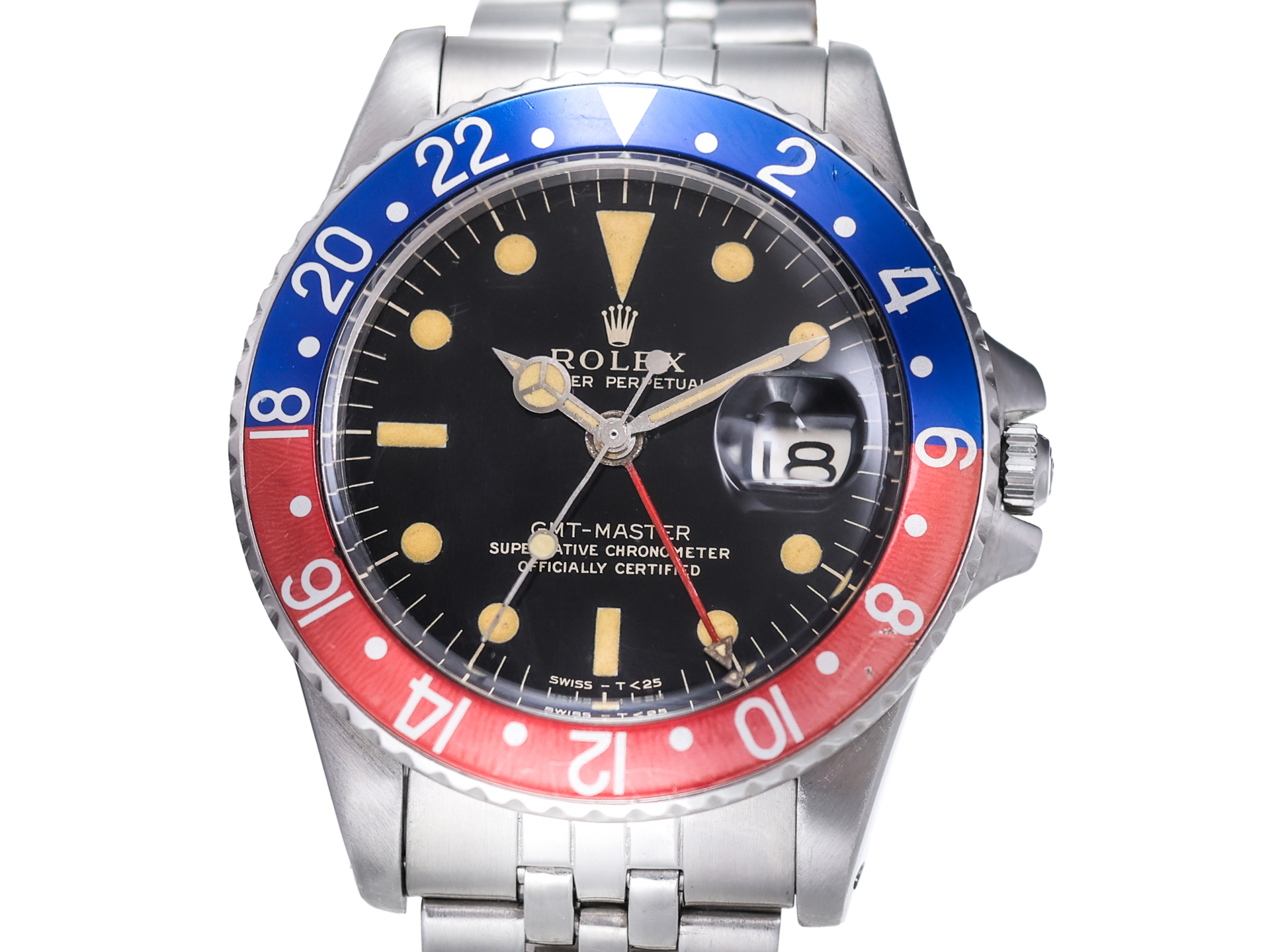 ROLEX Vintage GMT MASTER Ref 1675 PEPSI Jubile Steel Bracelet Pointed Lugs Gilt Tritium Dial Bj-1963 Rare
