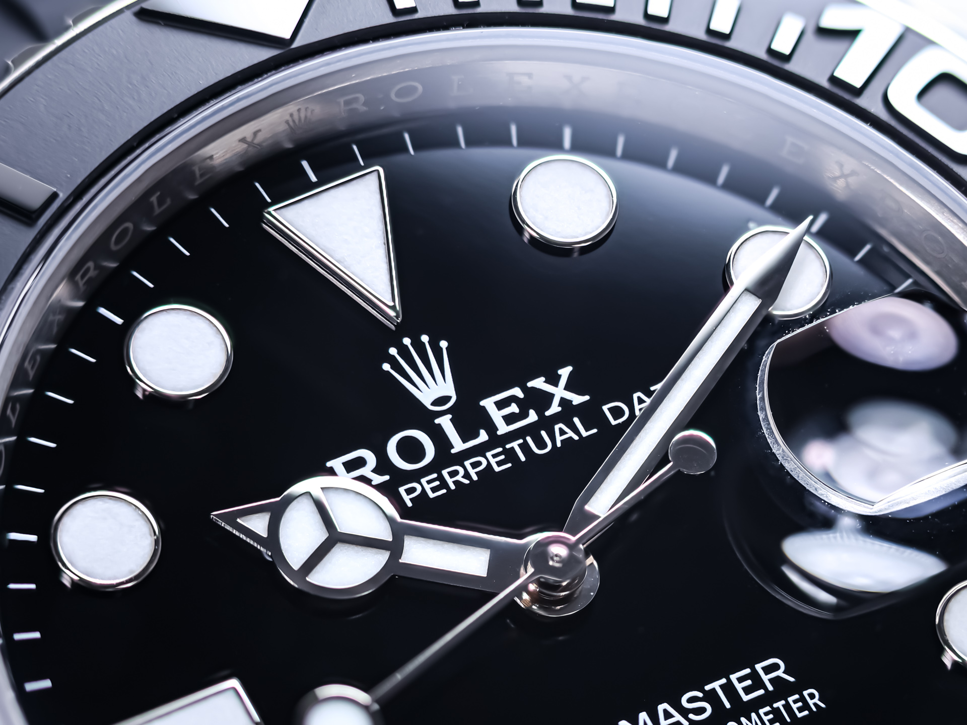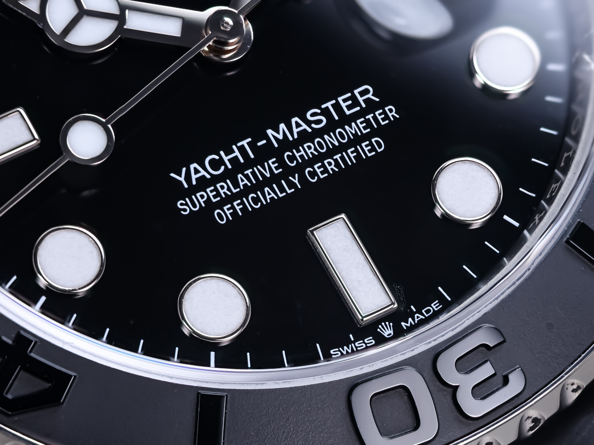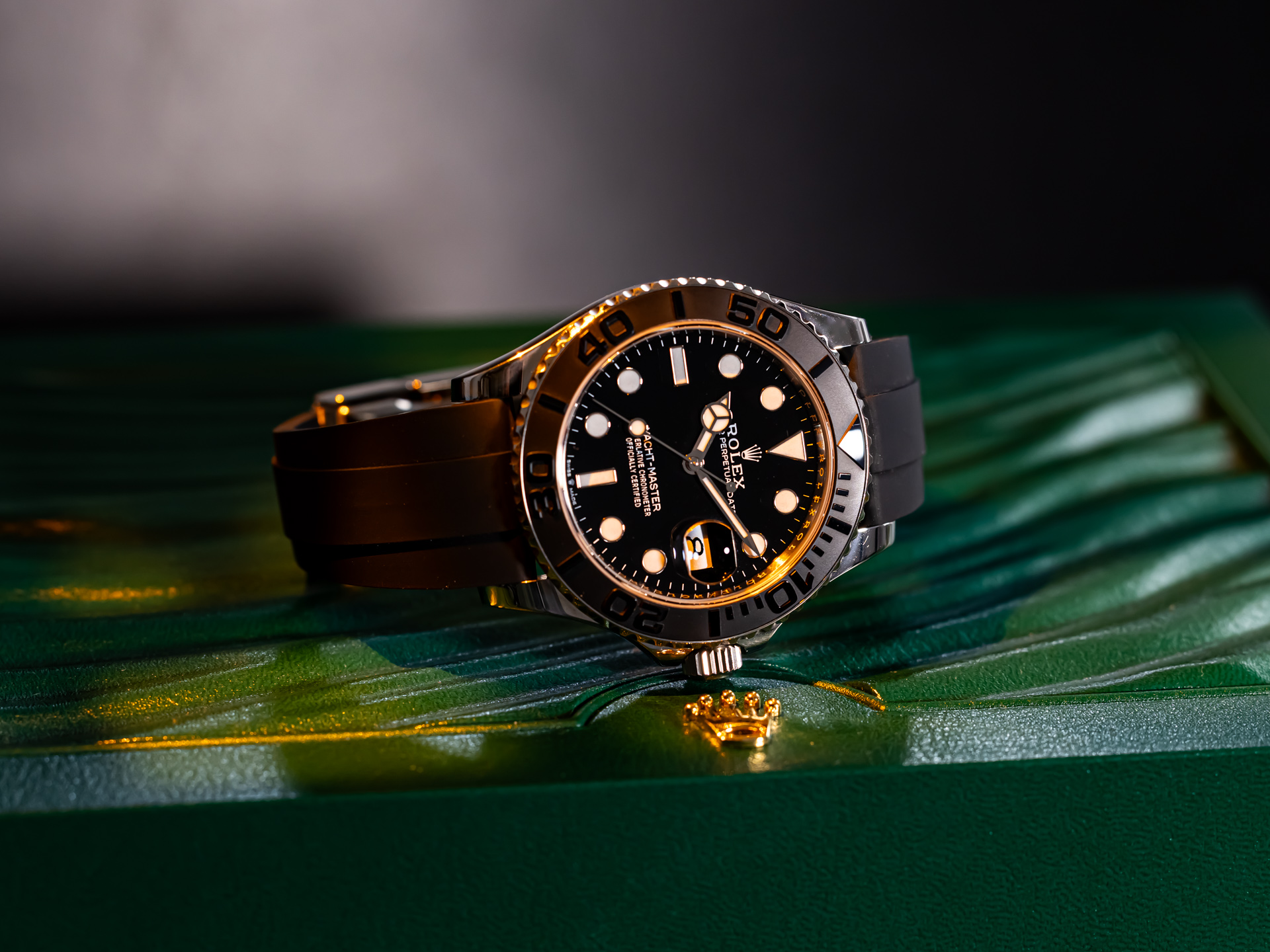 Paired with Rolex’s Oysterflex rubber strap, this Yacht-Master achieves the perfect fusion of sport and luxury. Internally reinforced with a flexible metal blade and secured by an 18k white gold Oysterlock folding clasp, the strap delivers exceptional comfort, stability, and elegance.