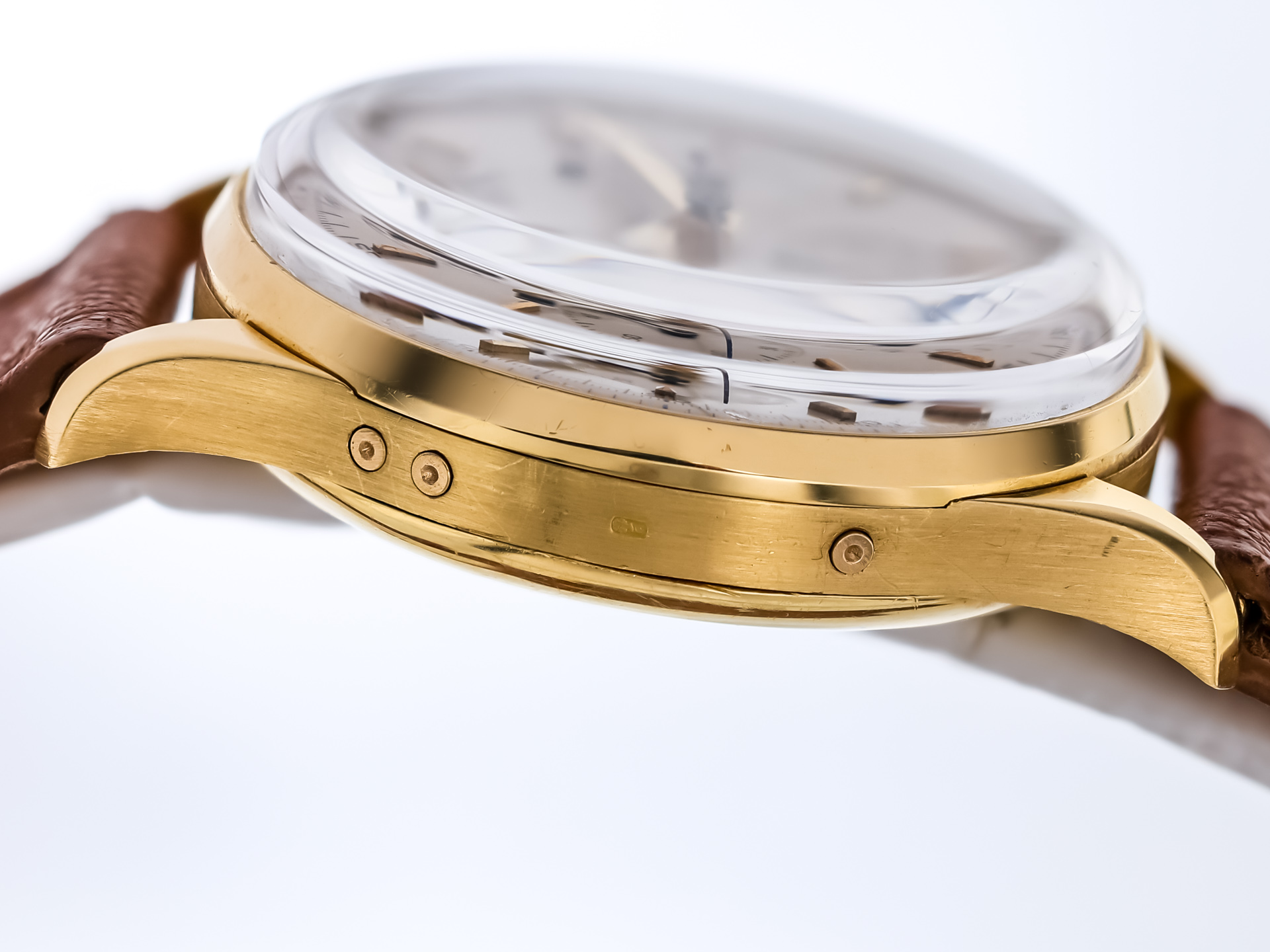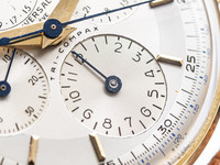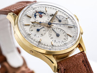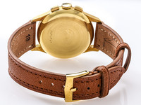 The case retains excellent proportions, with well-defined lugs and a harmonious balance between elegance and sportiness. Fitted with its correct chronograph pushers and crown, the watch remains a superb example of a classic vintage complication in precious metal.