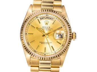 ... ROLEX DAY-DATE Ref 18038 18k Yellow Gold President Gold Coloured Tritium Dial Papers Bj-1988 Rolex