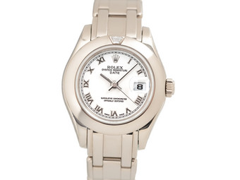 ... ROLEX DATEJUST LADY PEARLMASTER Ref-80329 18k White Gold Dimaond Set Bezel Box Papers Bj-2001 Rolex