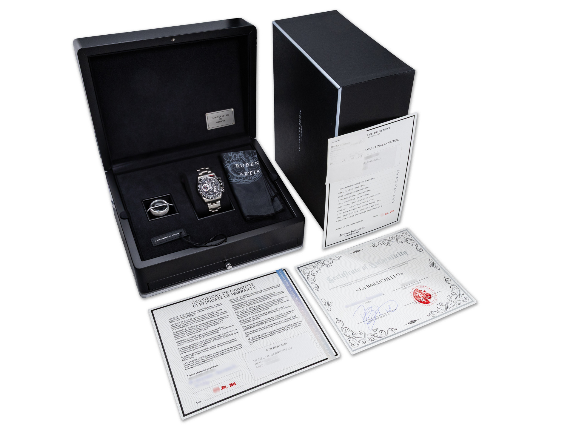 This Artisan de Genève “Rubens Barrichello” Daytona is accompanied by: