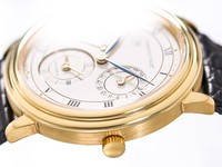 The beautifully balanced dial features a dual-time complication, allowing the wearer to track a second time zone with clarity and ease—an ideal companion for collectors who appreciate both function and timeless design. Slim proportions and traditional styling make this piece exceptionally versatile, equally suited for formal wear or discerning daily use.