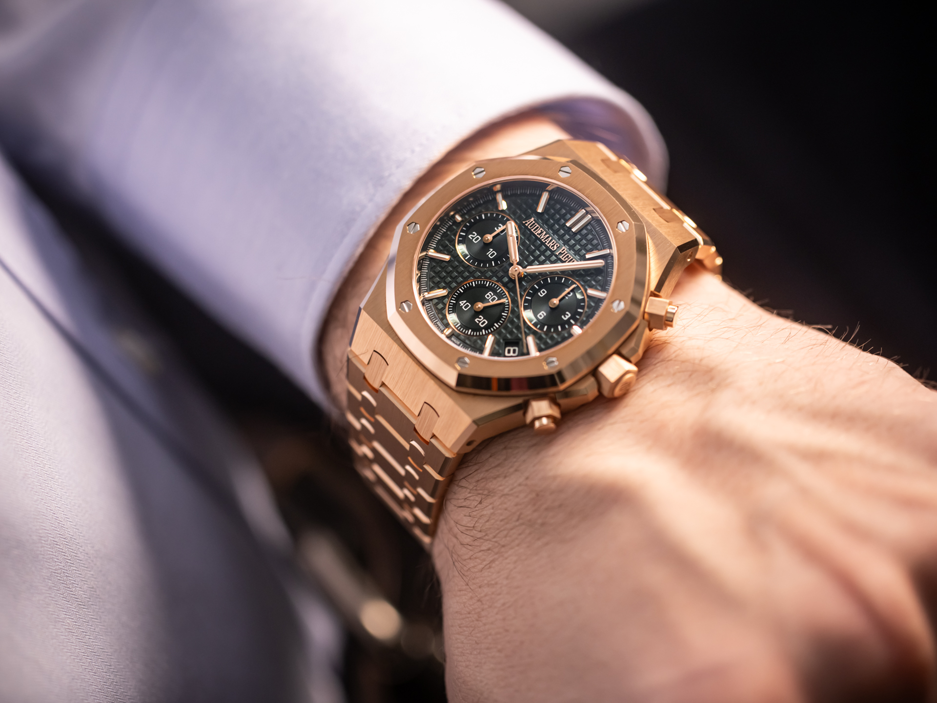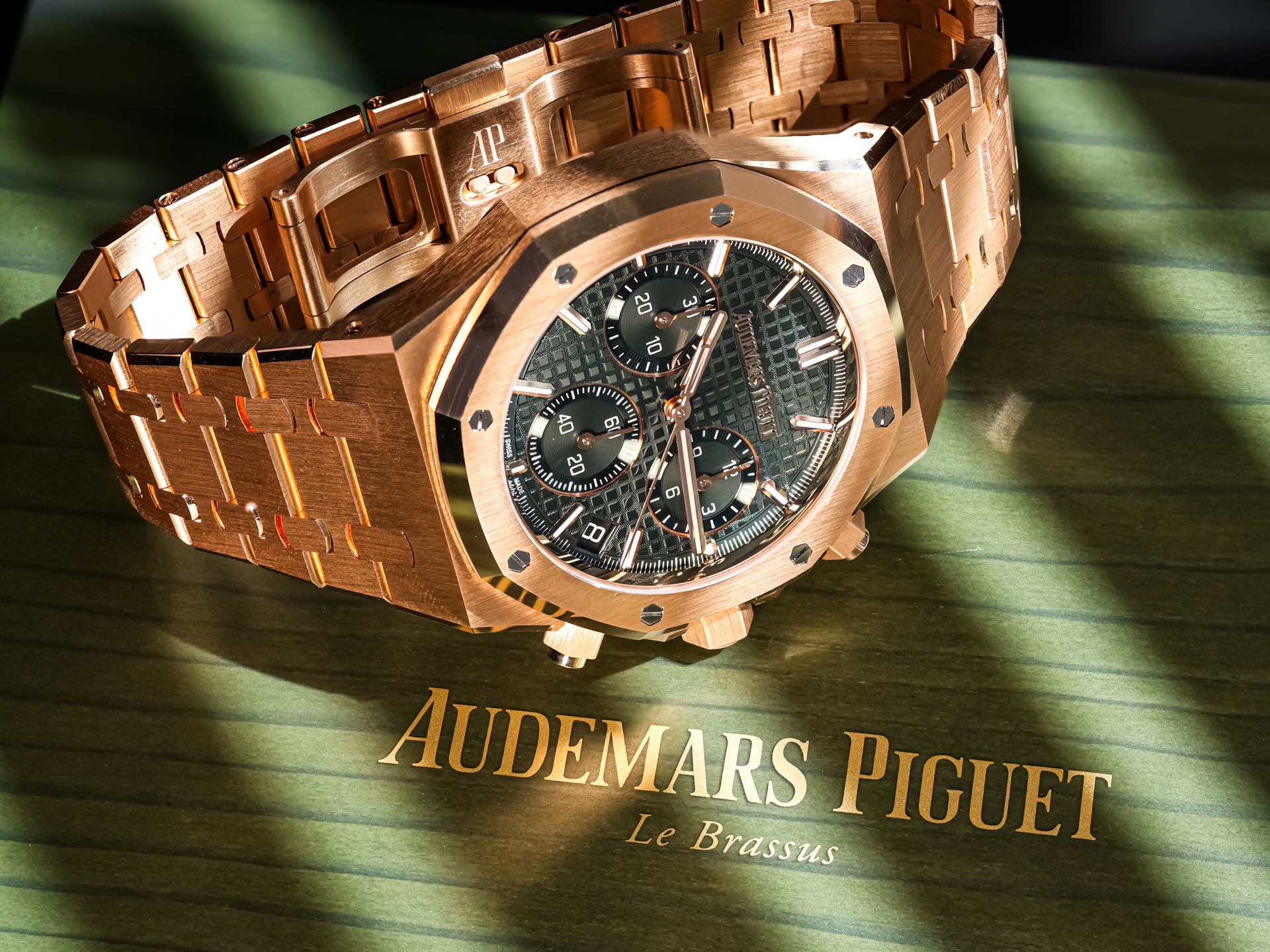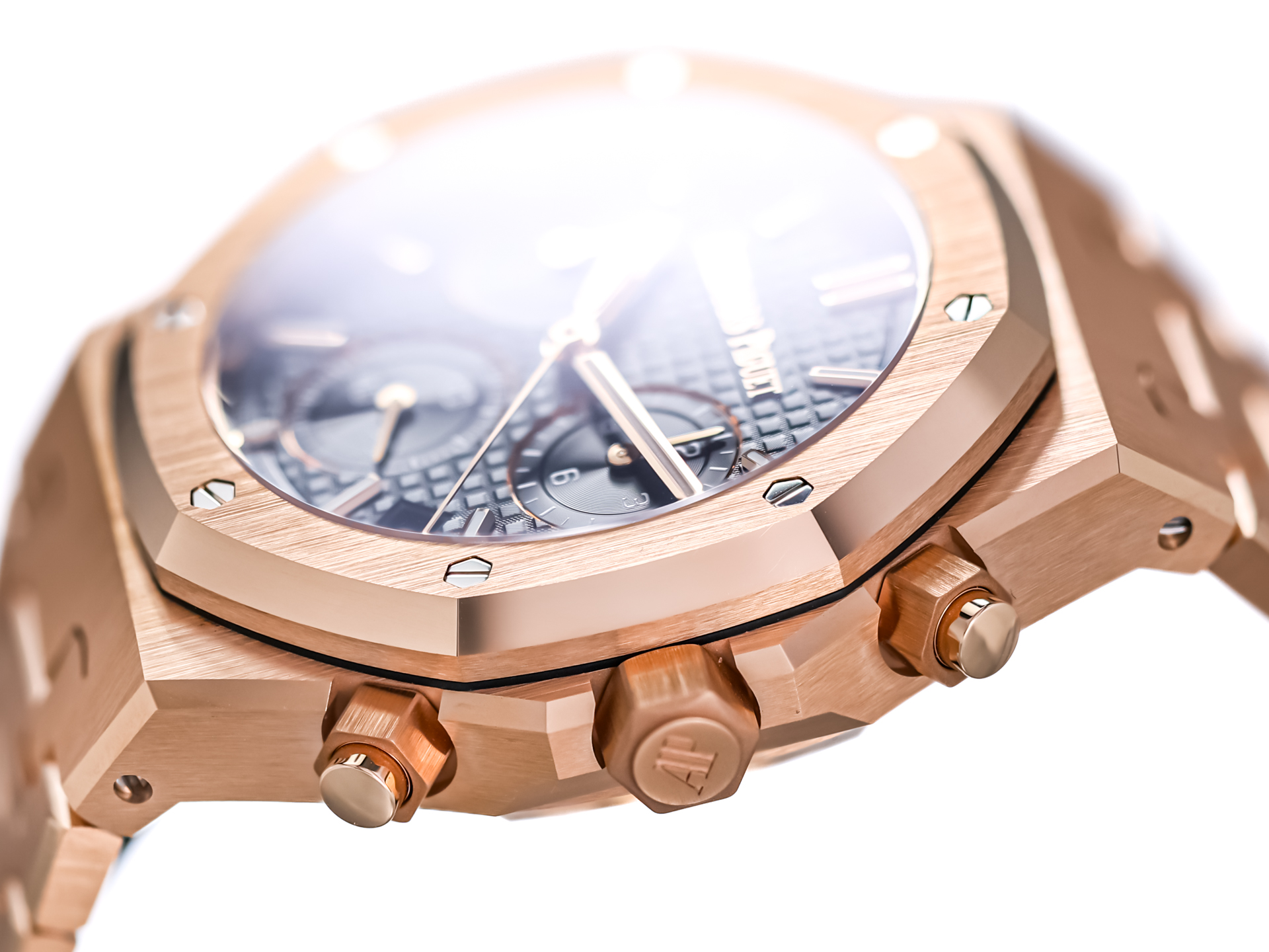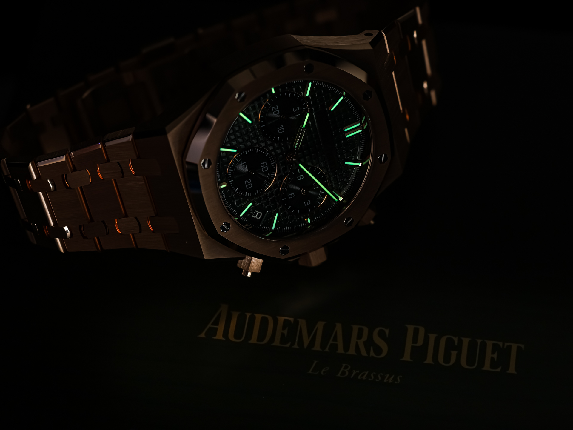 “A modern icon in solid gold, the Royal Oak Chronograph embodies the pinnacle of luxury sports watchmaking—bold, refined, and unmistakably AP.”