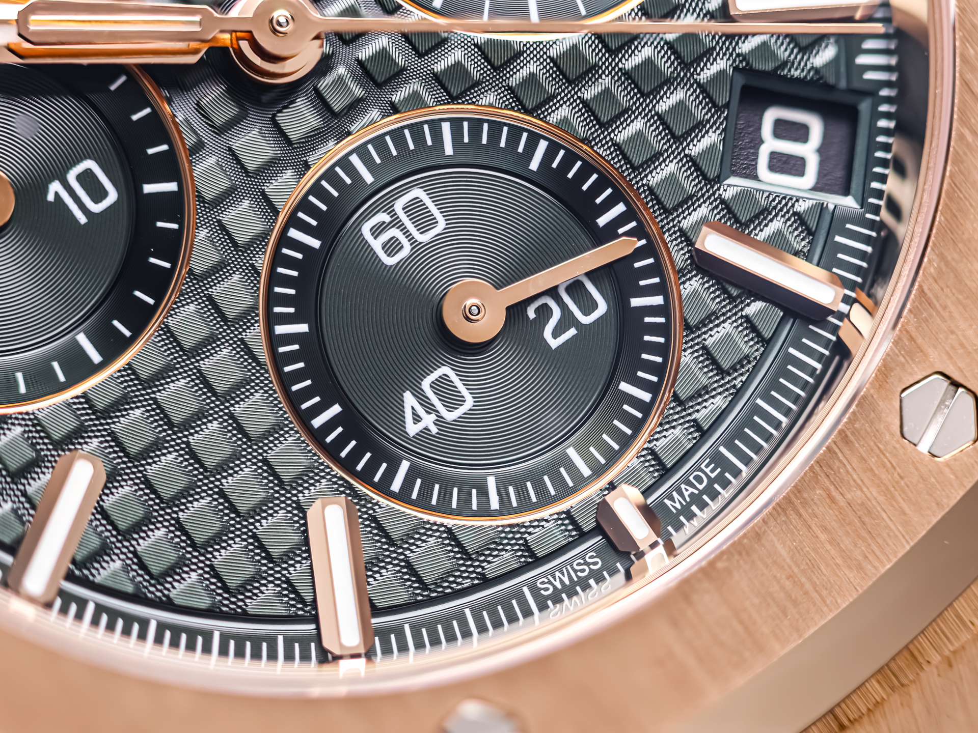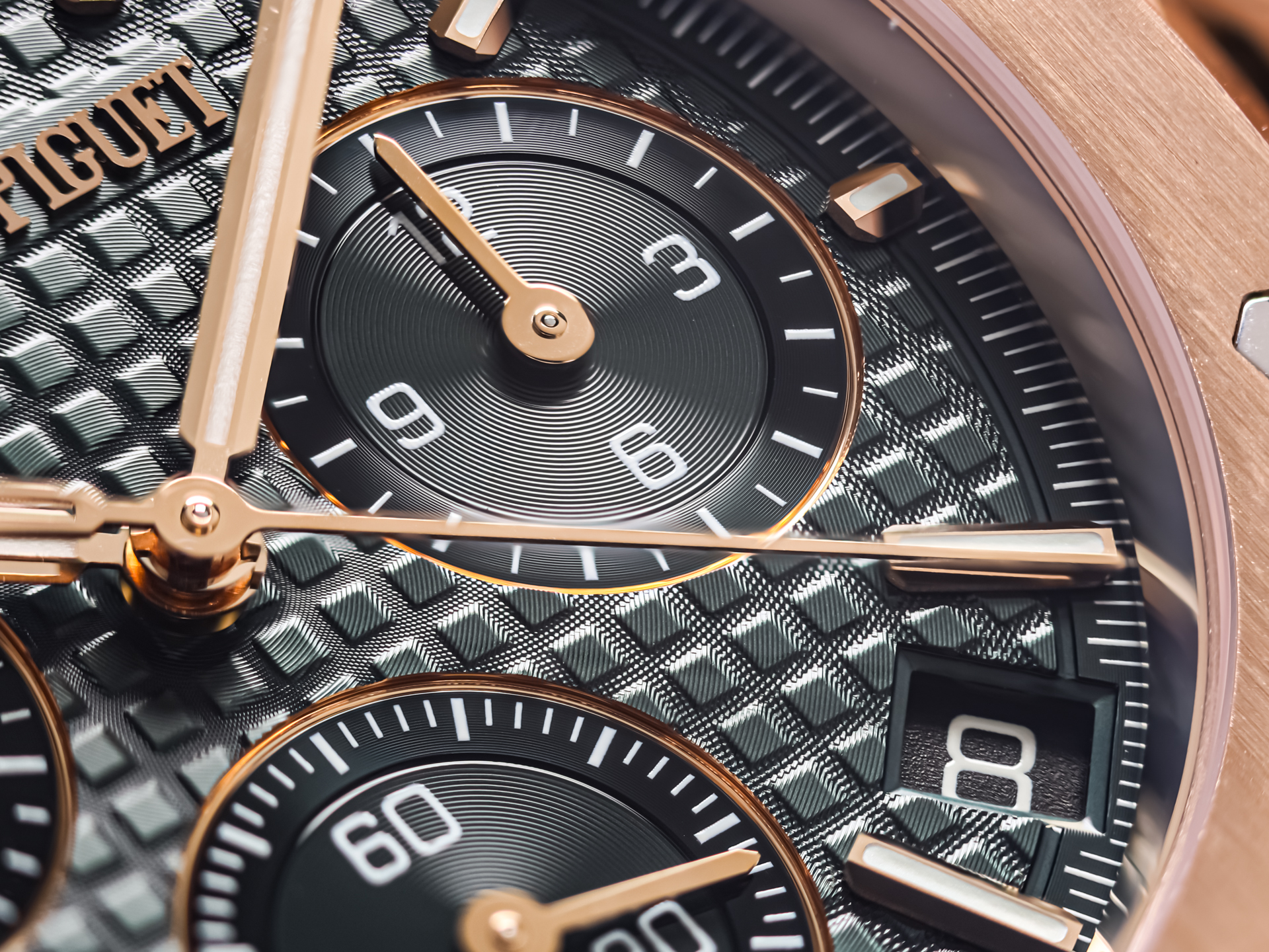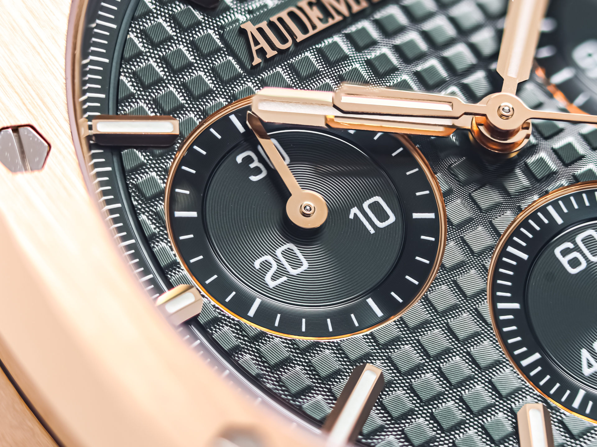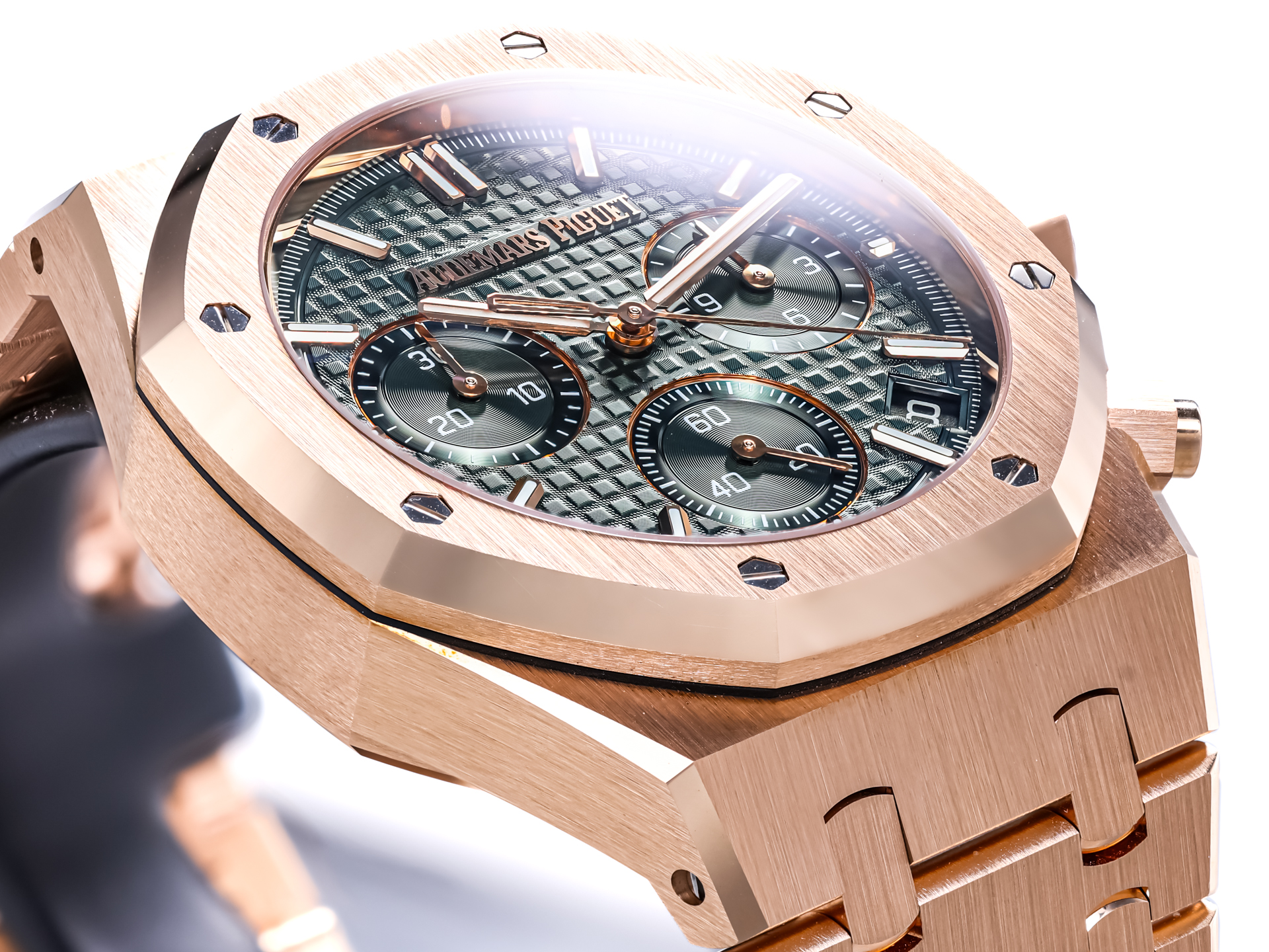 Audemars Piguet Royal Oak Chronograph Ref. 26240OR.OO.1320OR.08 – 18k Rose Gold — Green Tapisserie Dial – Bracelet – Full Set – Like New Condition