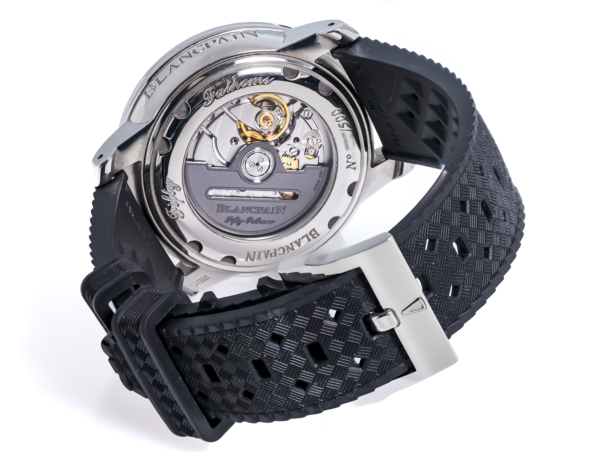 At its heart beats the in-house Blancpain caliber 1151, an automatic movement renowned for its robustness and precision. Offering an impressive 100-hour power reserve via twin barrels, the movement is visible through the sapphire caseback and finished to the high standards expected from Blancpain, the oldest watchmaking manufacture in continuous operation.