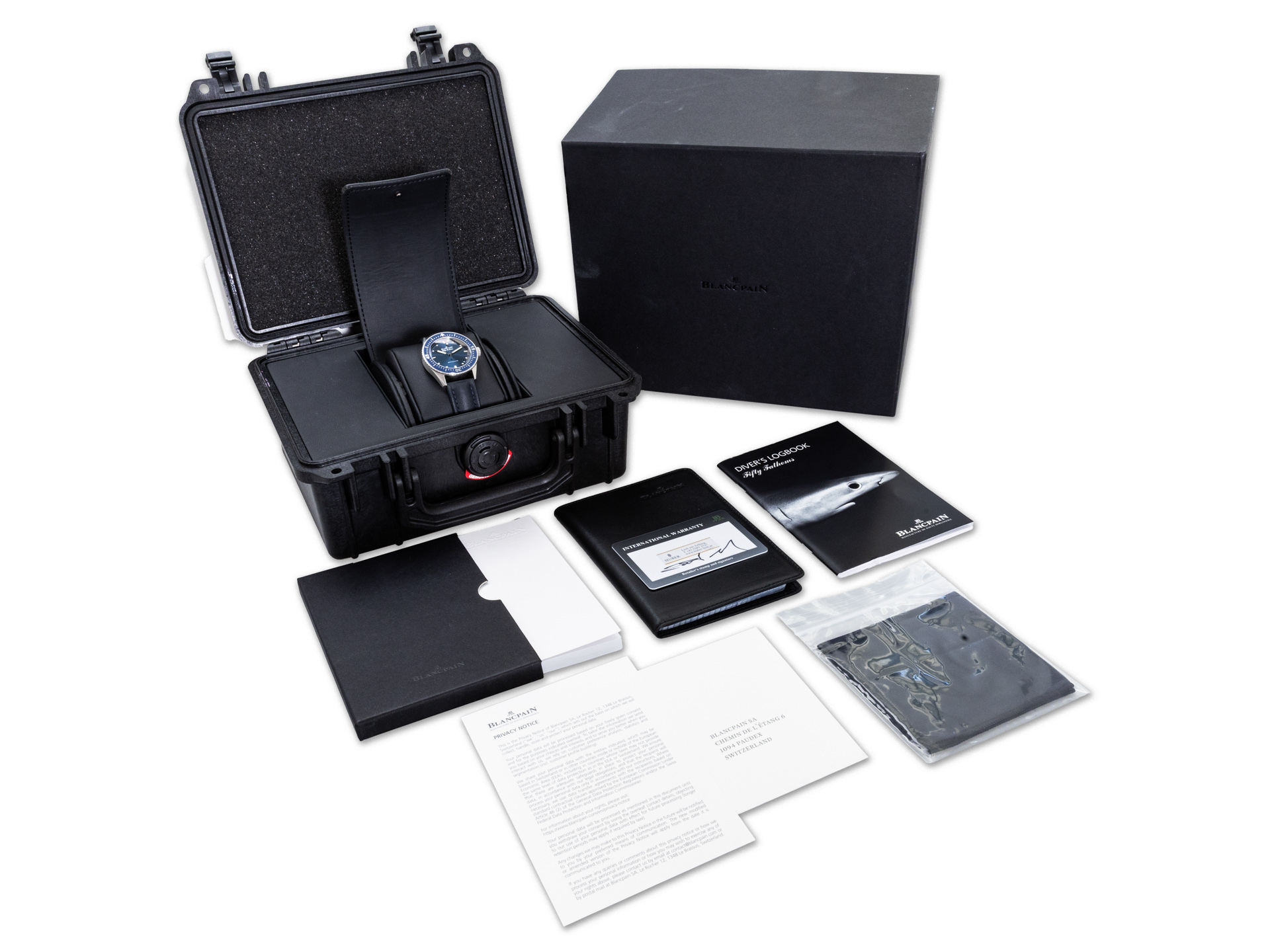 This Blancpain Fifty Fathoms Bathyscaphe 38 mm comes complete with: