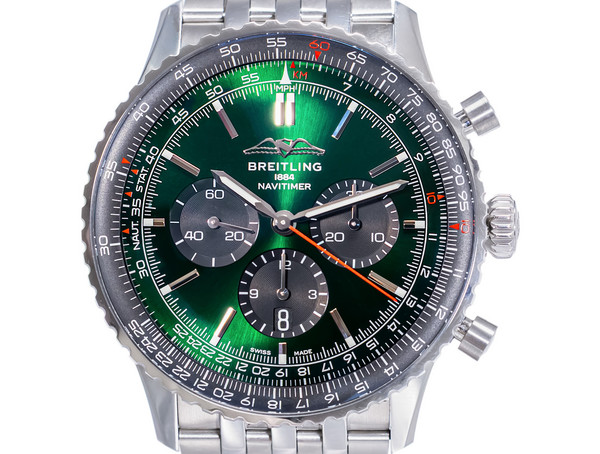 BREITLING NAVITIMER CHRONOGRAPH 46 Ref AB0137 Stainless Steel Green-Black Dial Box Papers Bj-2022 Like New