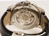 The substantial 44.5 mm case is crafted in stainless steel and features a dynamic interplay of satin-brushed and polished surfaces. Its powerful architecture, accented by the smooth bezel and well-integrated pushers, gives the watch a commanding yet elegant presence on the wrist. The sapphire crystal and solid case construction underline the Patravi collection’s commitment to durability and performance.