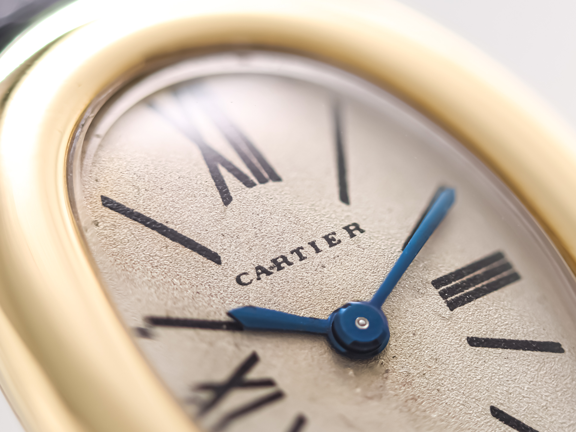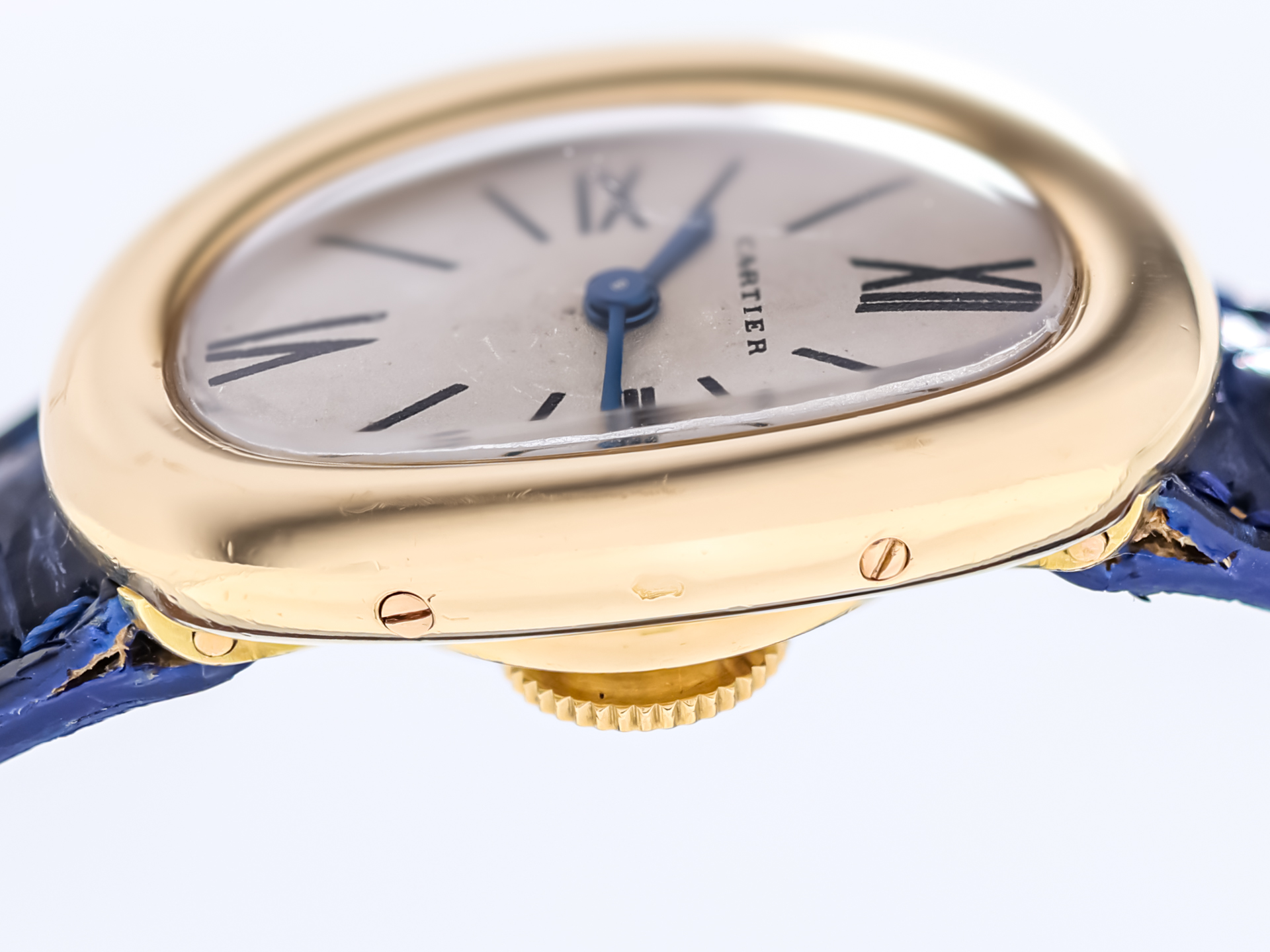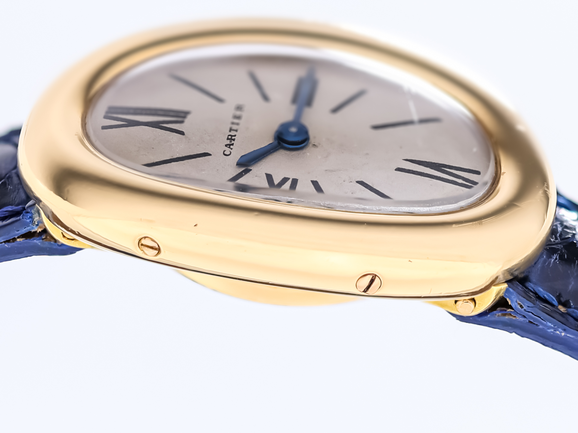 The dial is clean and understated, fully in line with Cartier’s design philosophy of timeless elegance and legibility. Its simplicity allows the sculptural case to remain the focal point, highlighting the watch’s distinctive silhouette.
