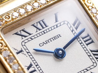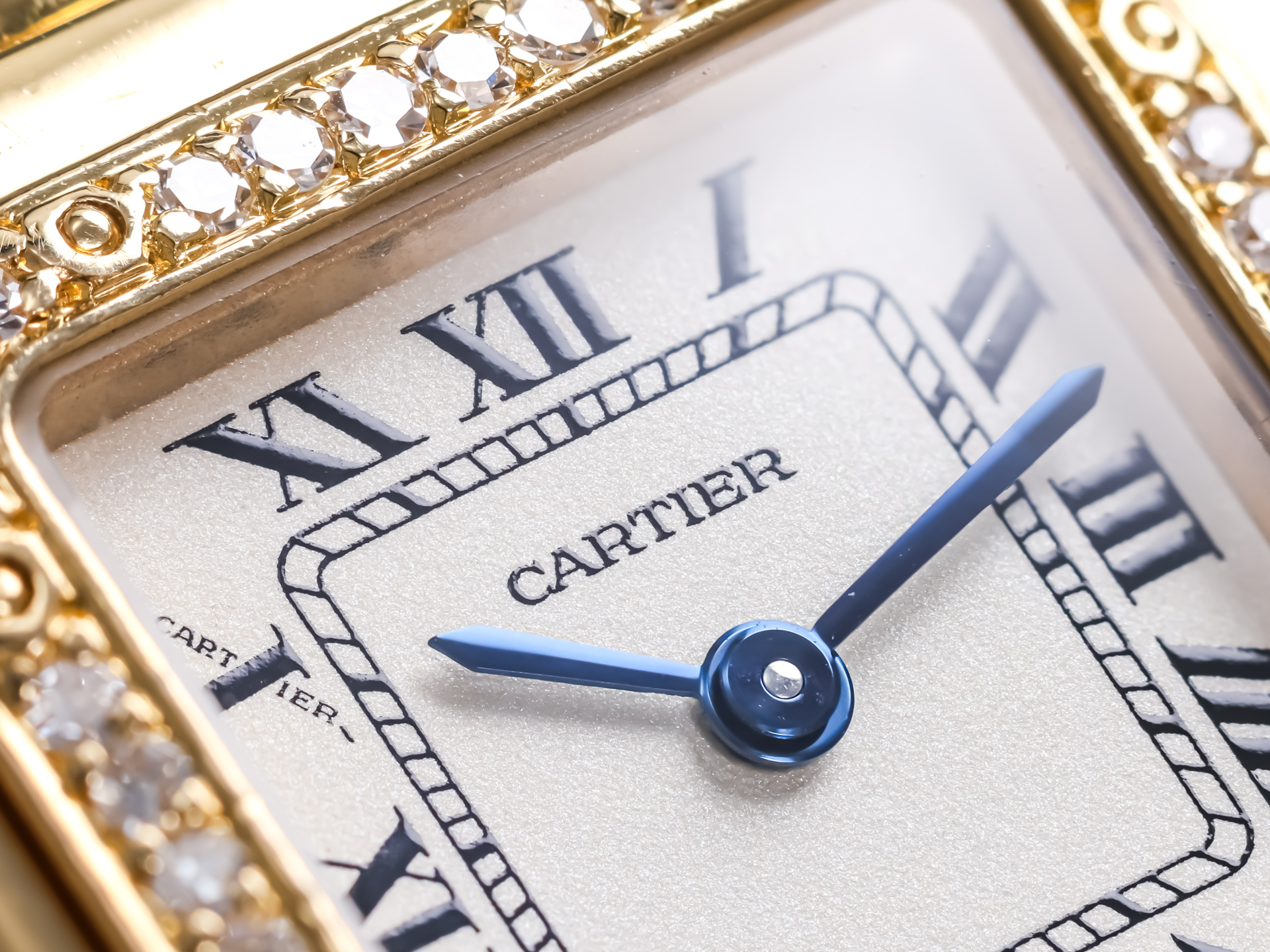 This particular example, dating from 1987, represents the classic first-generation Lady size (22mm), housing a precise Cartier quartz movement. The 18k yellow gold case and bracelet exude warmth and luxury, beautifully complemented by the brilliant-cut diamond bezel, which adds just the right touch of glamour.