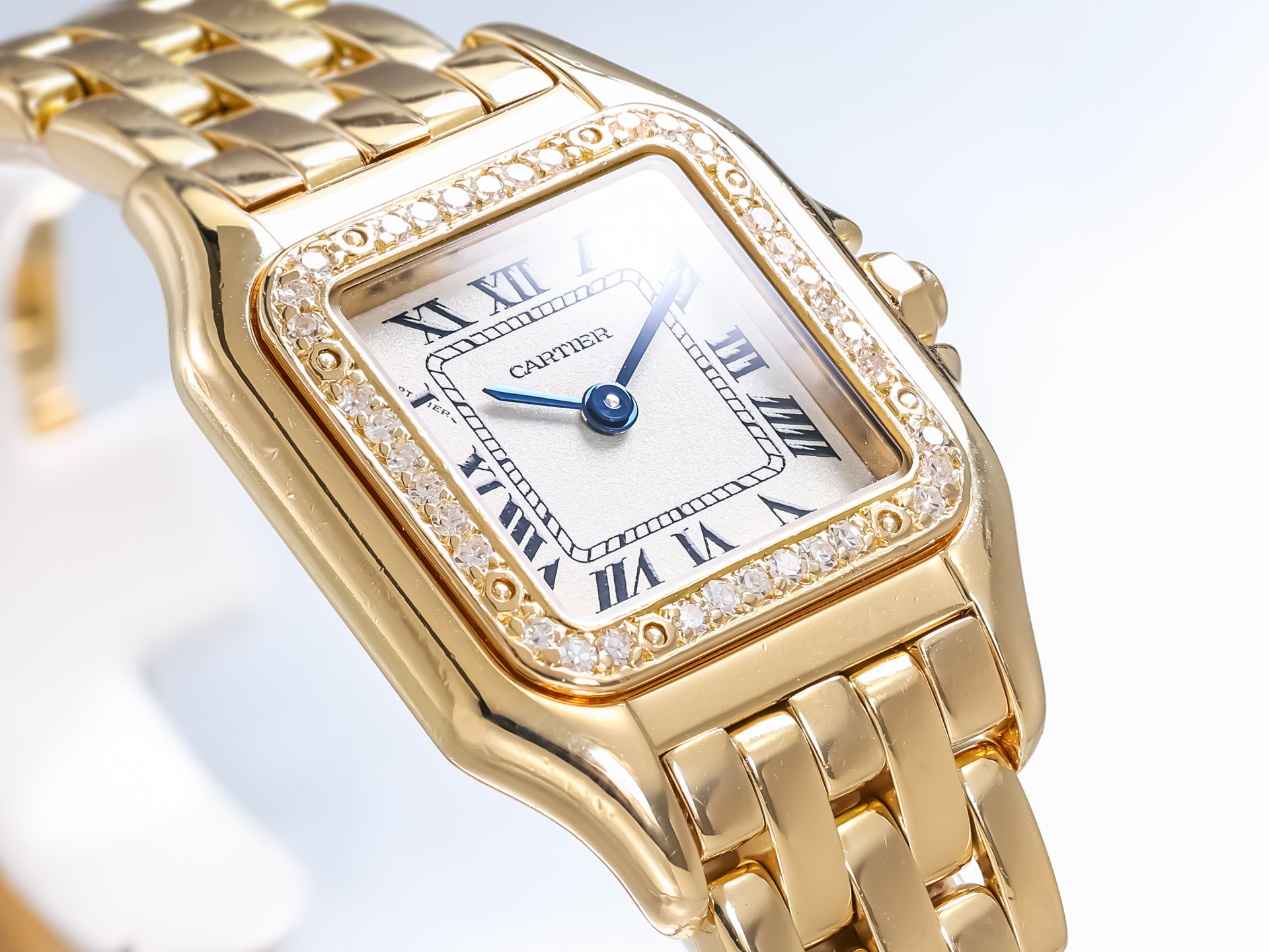 Introduced in the early 1980s, the Panthère quickly became one of Cartier’s most iconic creations—an embodiment of elegance, sensuality, and refined Parisian style. Its fluid bracelet links and seamless integration with the case give the watch a distinctive jewelry-like feel while maintaining Cartier’s timeless sophistication.