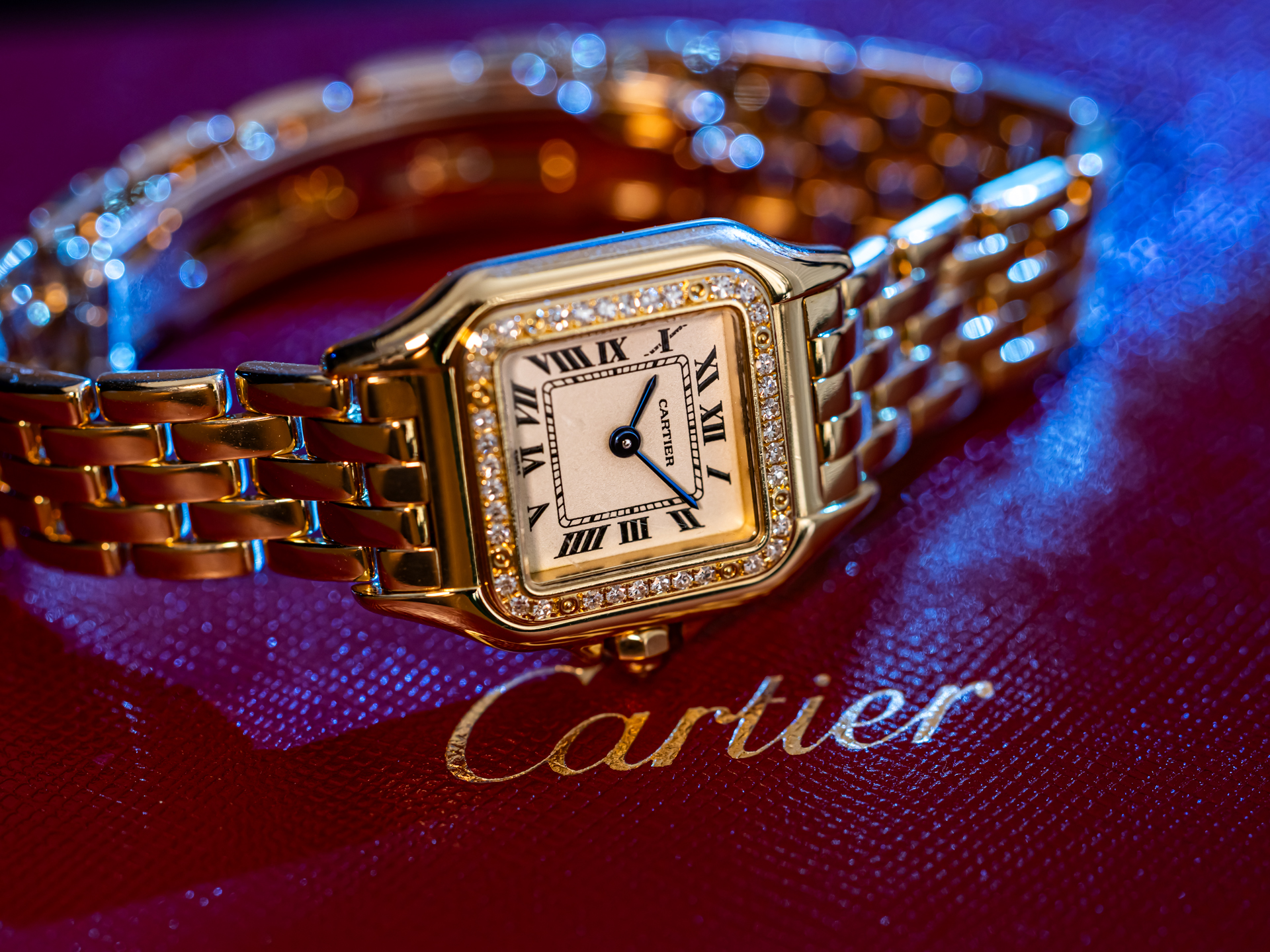 CARTIER PANTHERE Ref 12802 18k Yellow Gold Diamond Bezel Bj-1990 Service 2026