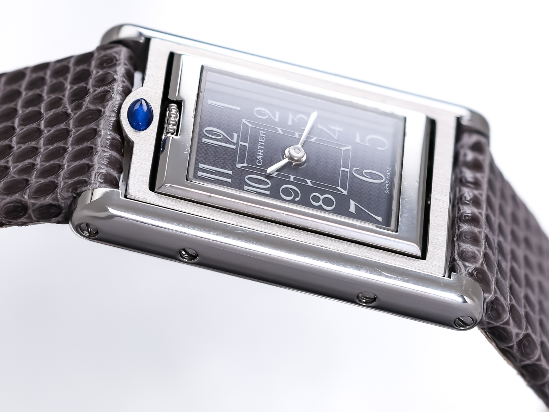 Cartier Tank Basculante – Ref. 2386 – Stainless Steel – Cartier Service 01/2026 – Grey Lizard Strap