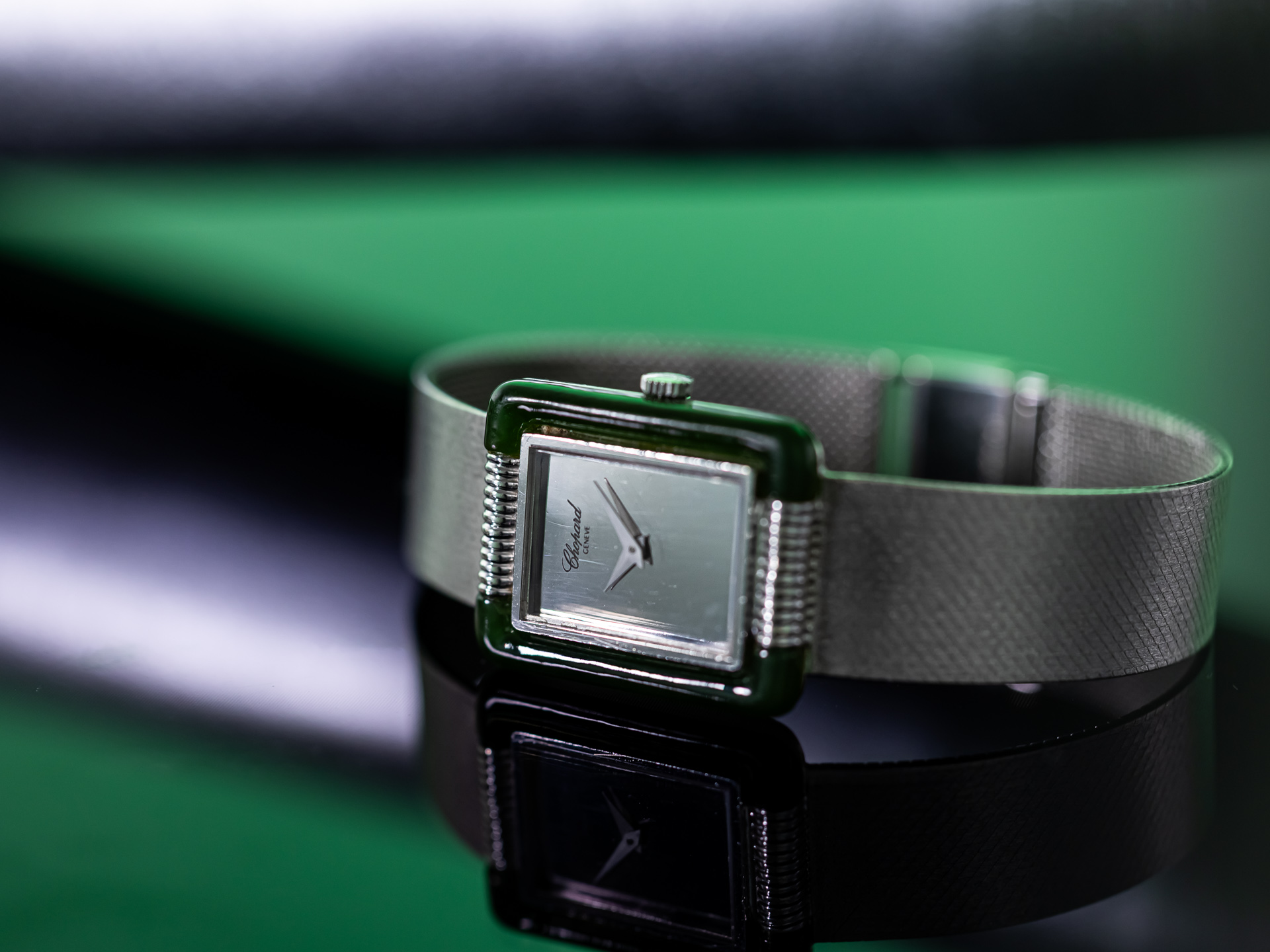 CHOPARD Ladies Juwelry Watch 18K White Gold JADE STONE 1970ies