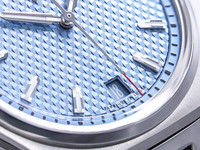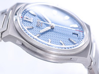 Housed in a 40.5 mm stainless steel case, the Antarctique is celebrated for its sleek, ergonomic profile and the fluid transition into its remarkable integrated bracelet. The defining characteristic of this example is the "Stairway to Eternity" fluted dial in a striking Glacier Blue. This proprietary trapezoid motif creates a dynamic play of light, shifting from a soft crystalline frost to a deep aquatic azure depending on the angle, making it one of the most visually engaging dials in contemporary horology.