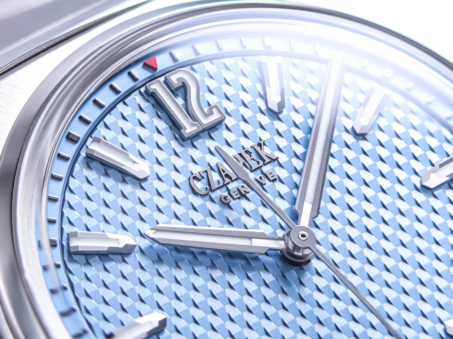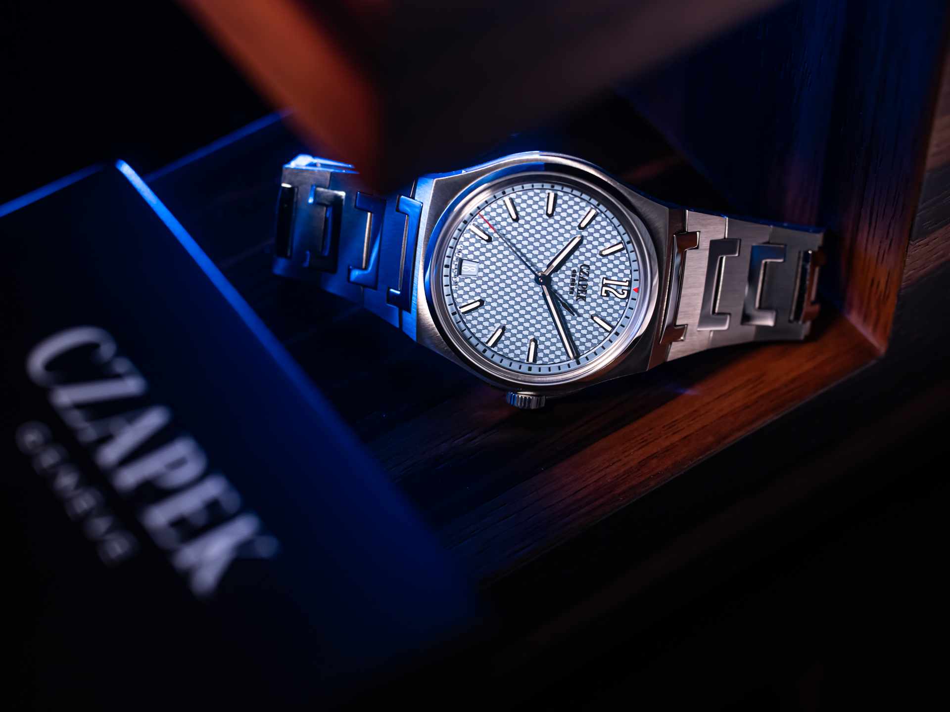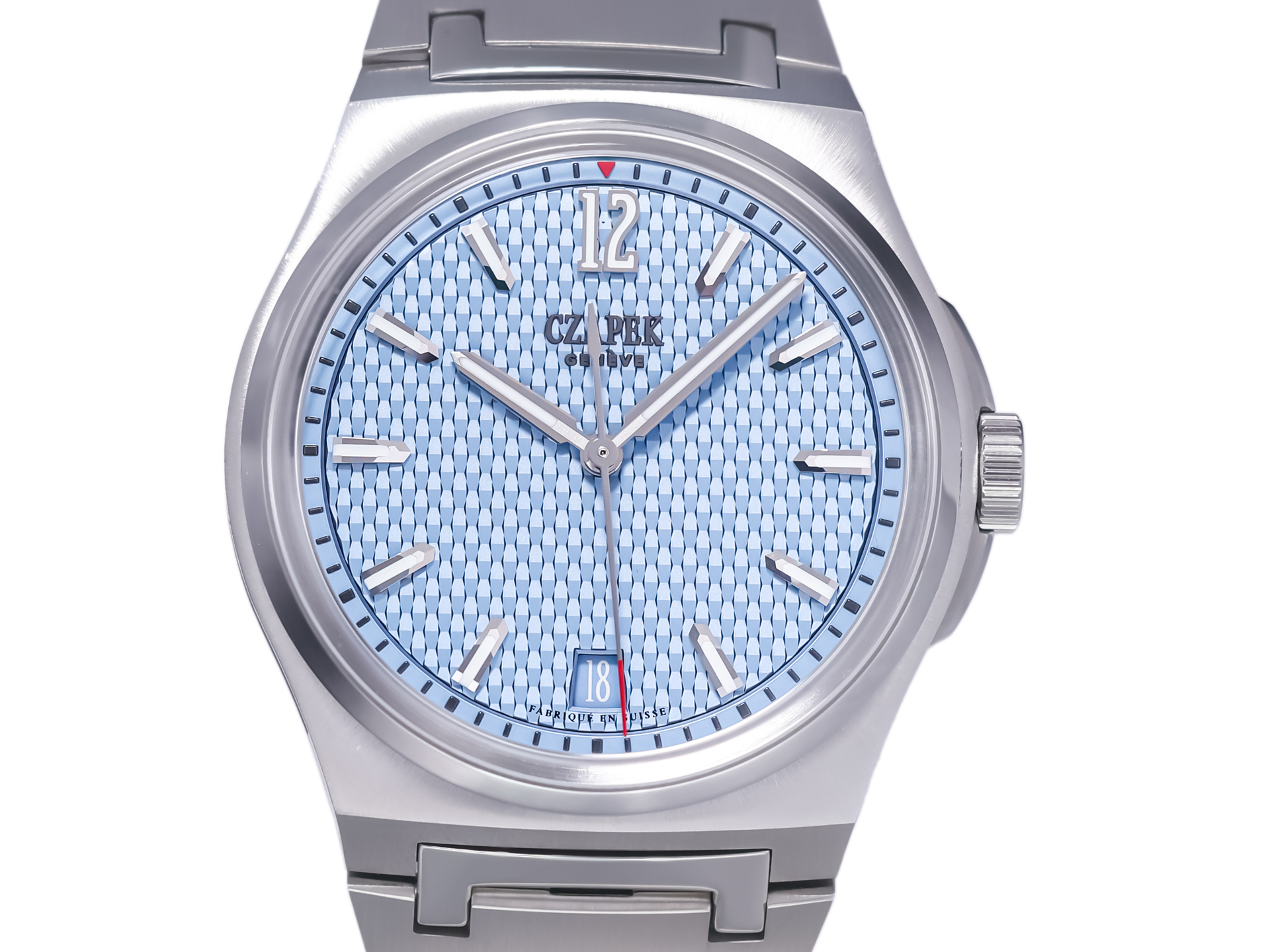 The watch features the refined "Czapek" stylized Arabic "12" and luminescent steel markers, offering perfect legibility against the complex textured background. Every surface of the case and bracelet displays a meticulous alternation of brushed and mirror-polished finishes, highlighting the sharp, architectural lines that have made the Antarctique a cult favorite among serious collectors.