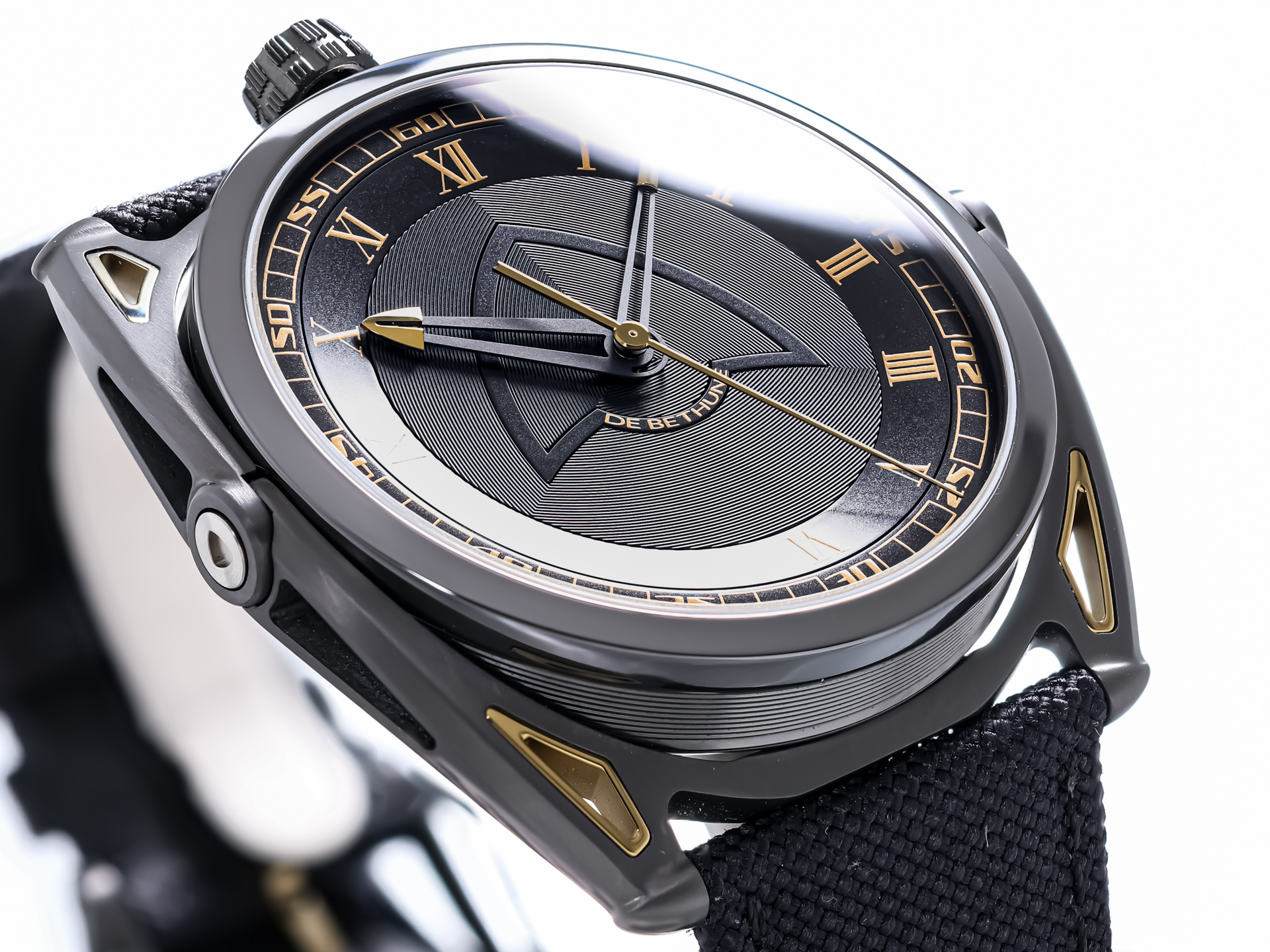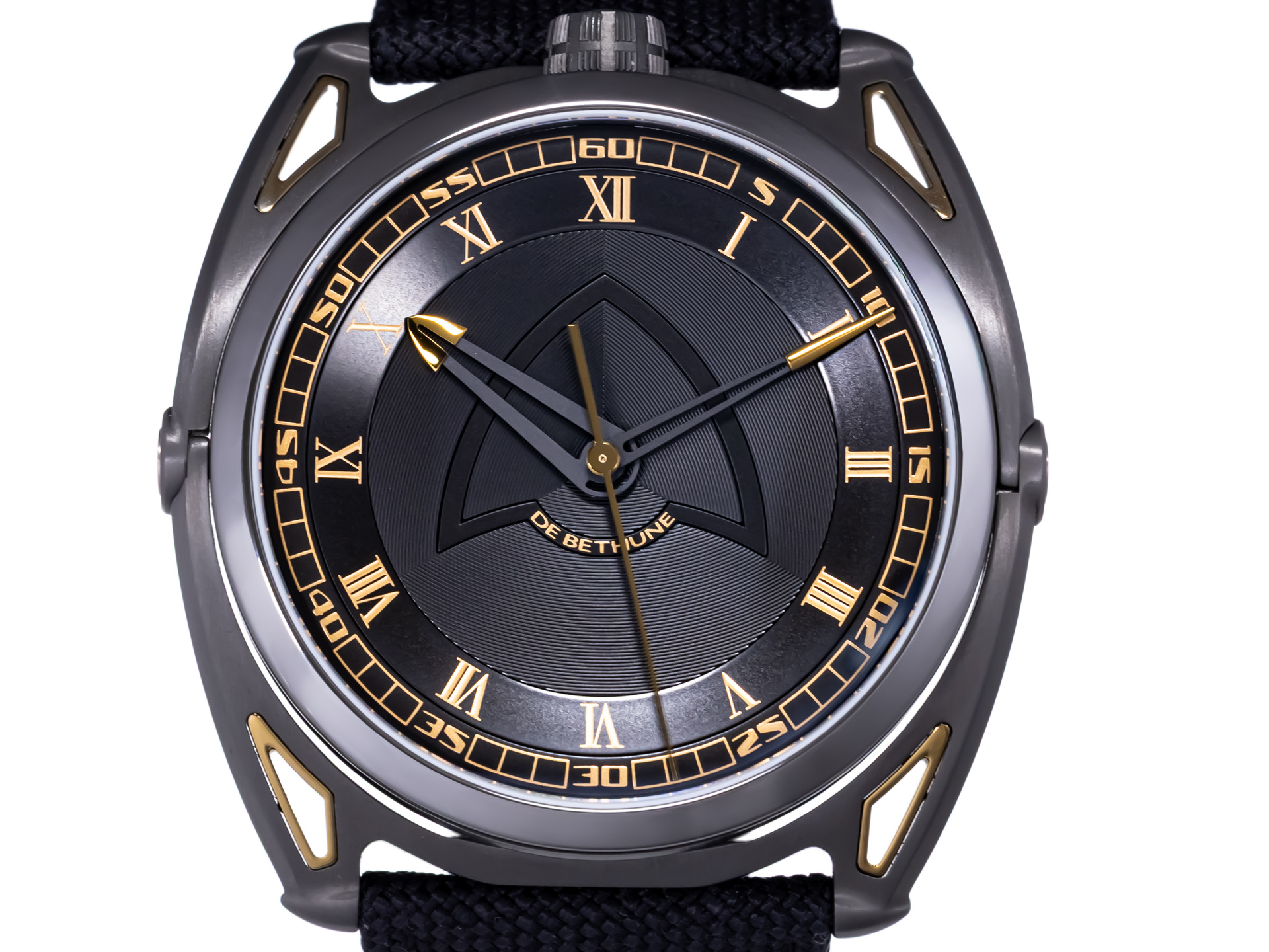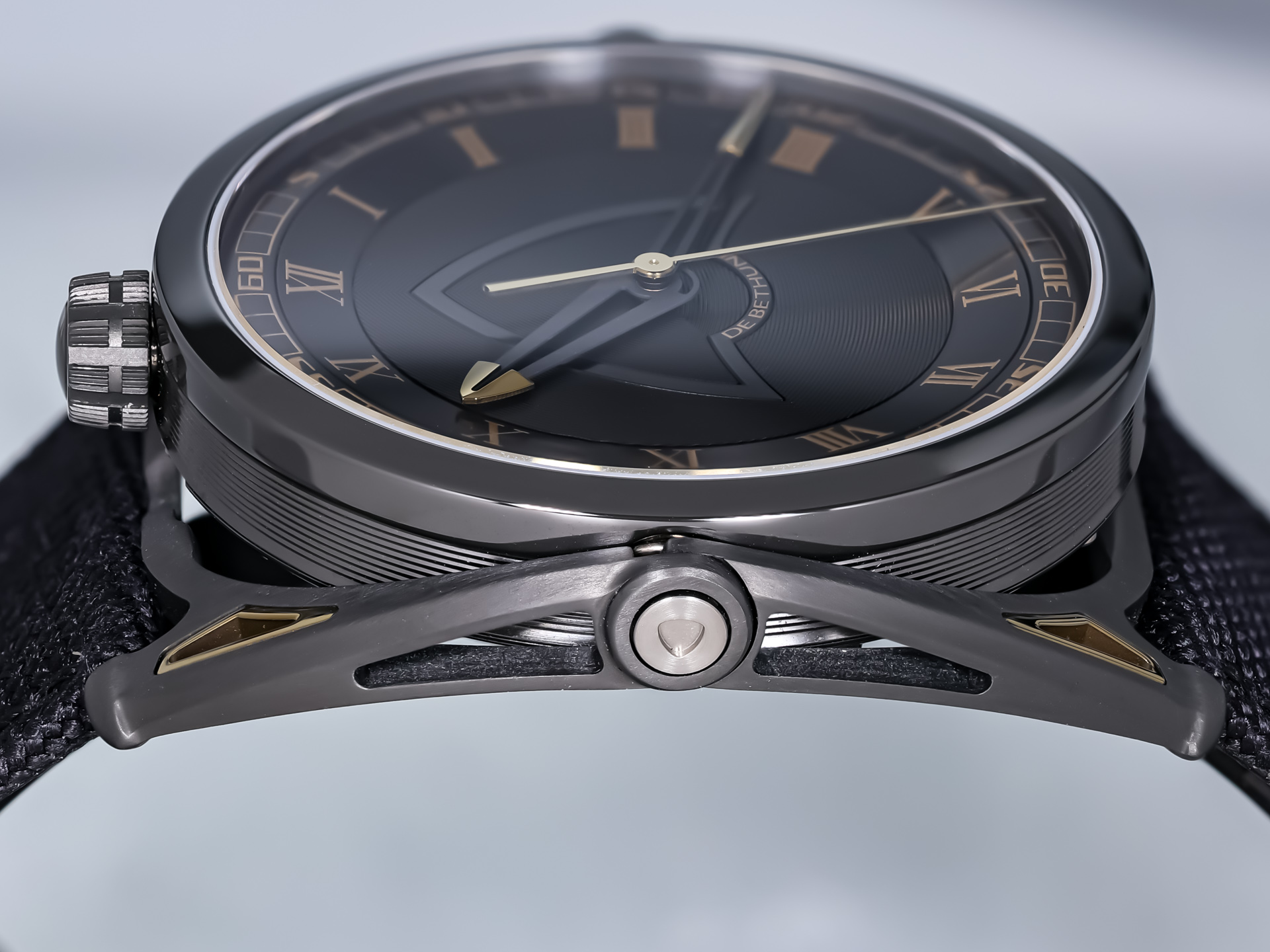 The 43 mm Grade 5 titanium case features De Bethune’s patented floating lug system, ensuring exceptional wrist comfort and ergonomic balance. Its sleek, futuristic architecture embodies the independent manufacture’s avant-garde approach, combining sculptural design with mechanical mastery.
