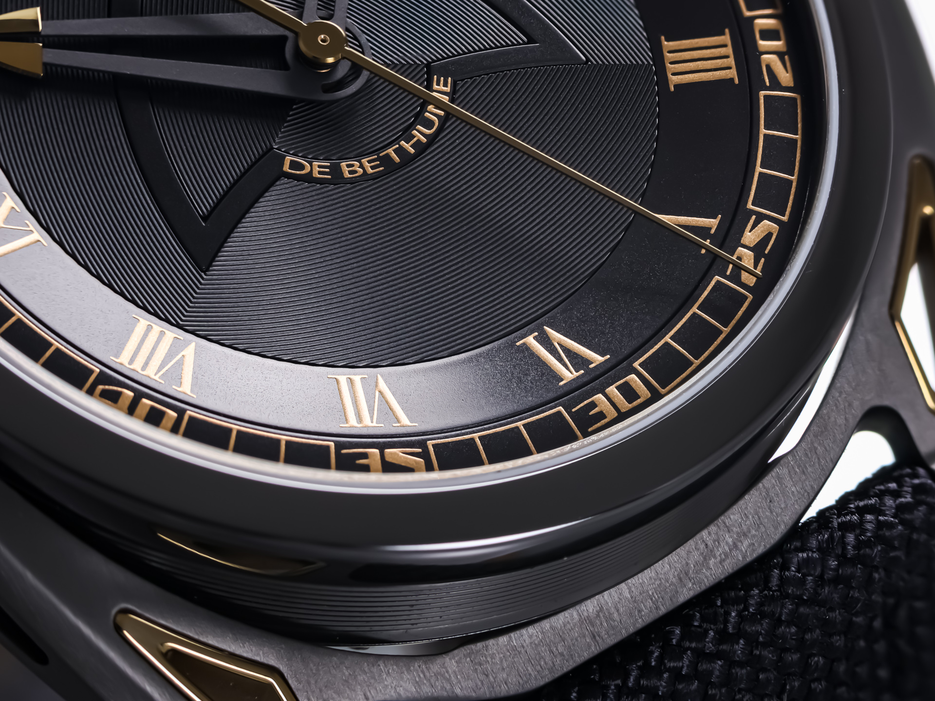 Offered here in like-new condition, complete with original box, papers, and full set, this striking timepiece pays tribute to the legendary black and gold livery of the 1970s Formula 1 “John Player Special” race cars — a design that perfectly reflects De Bethune’s fusion of modern engineering and artistic refinement.