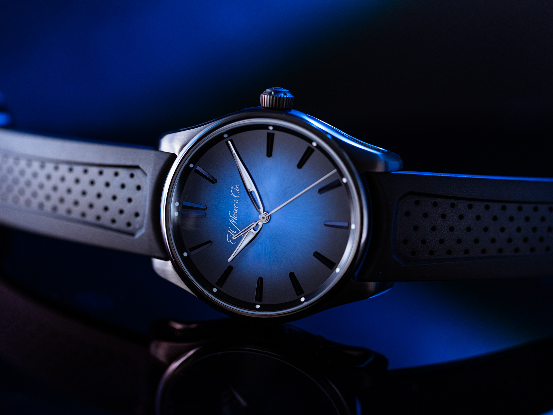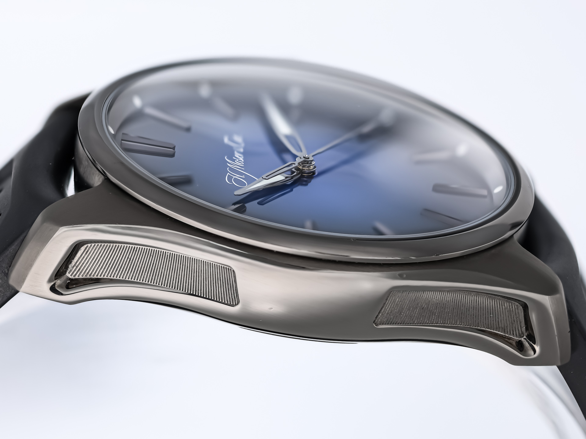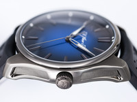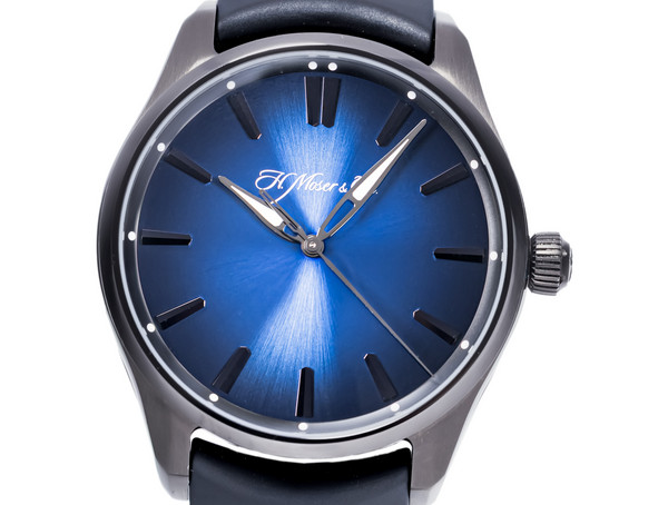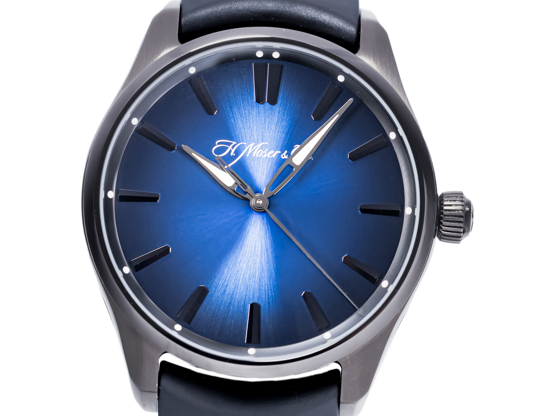 Its fumé dial, a signature of Moser’s minimalist design ethos, radiates understated luxury. With a sunburst finish that deepens toward the edges, the dial is free from distractions — no date window, no numerals — just luminous leaf-shaped hands and hour markers, allowing the craftsmanship and finishing to speak for themselves.