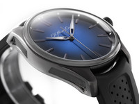 We are delighted to present this H. Moser & Cie Pioneer Centre Seconds with ceramic case and black rubbers strap and pin buckle.