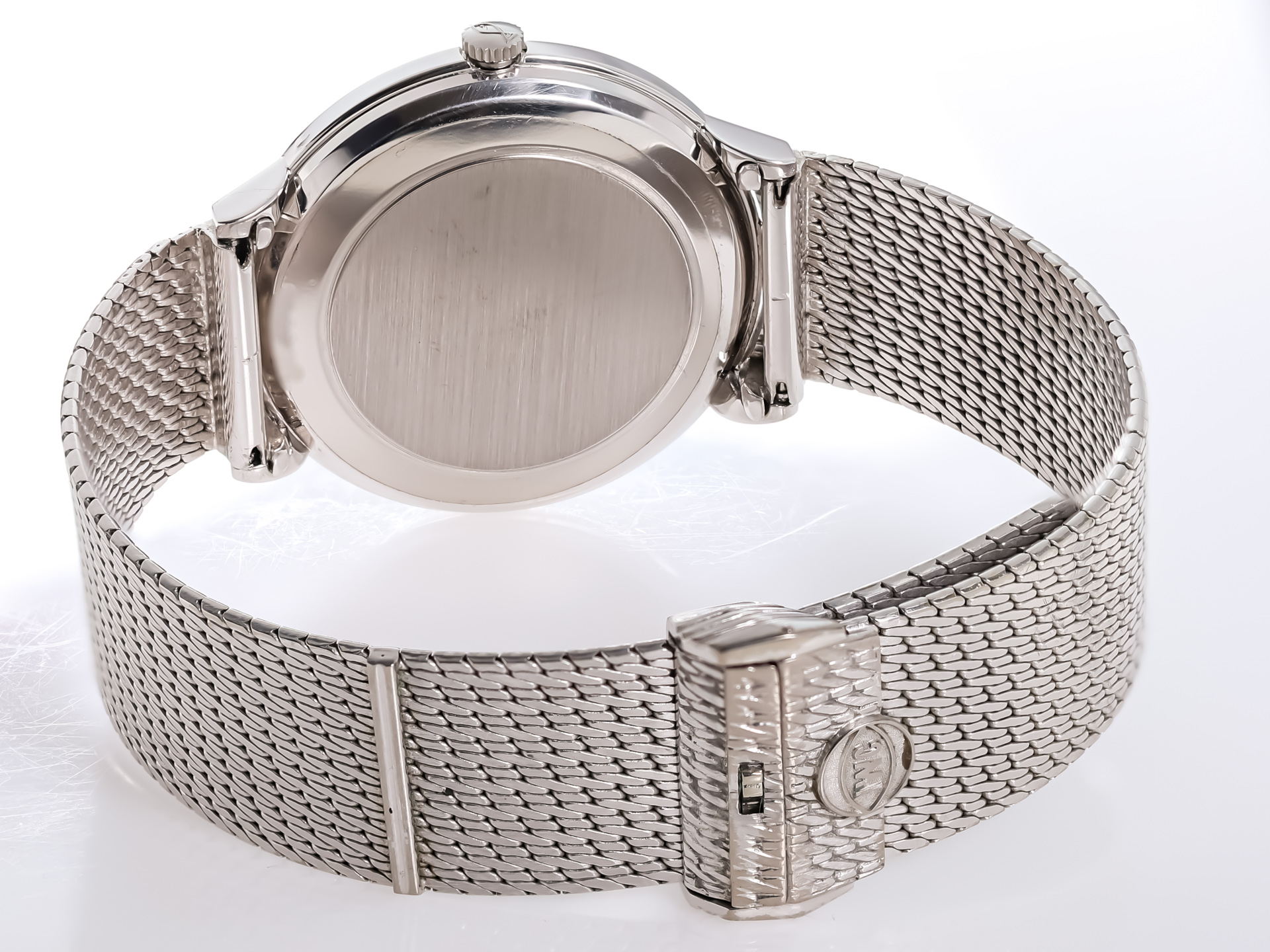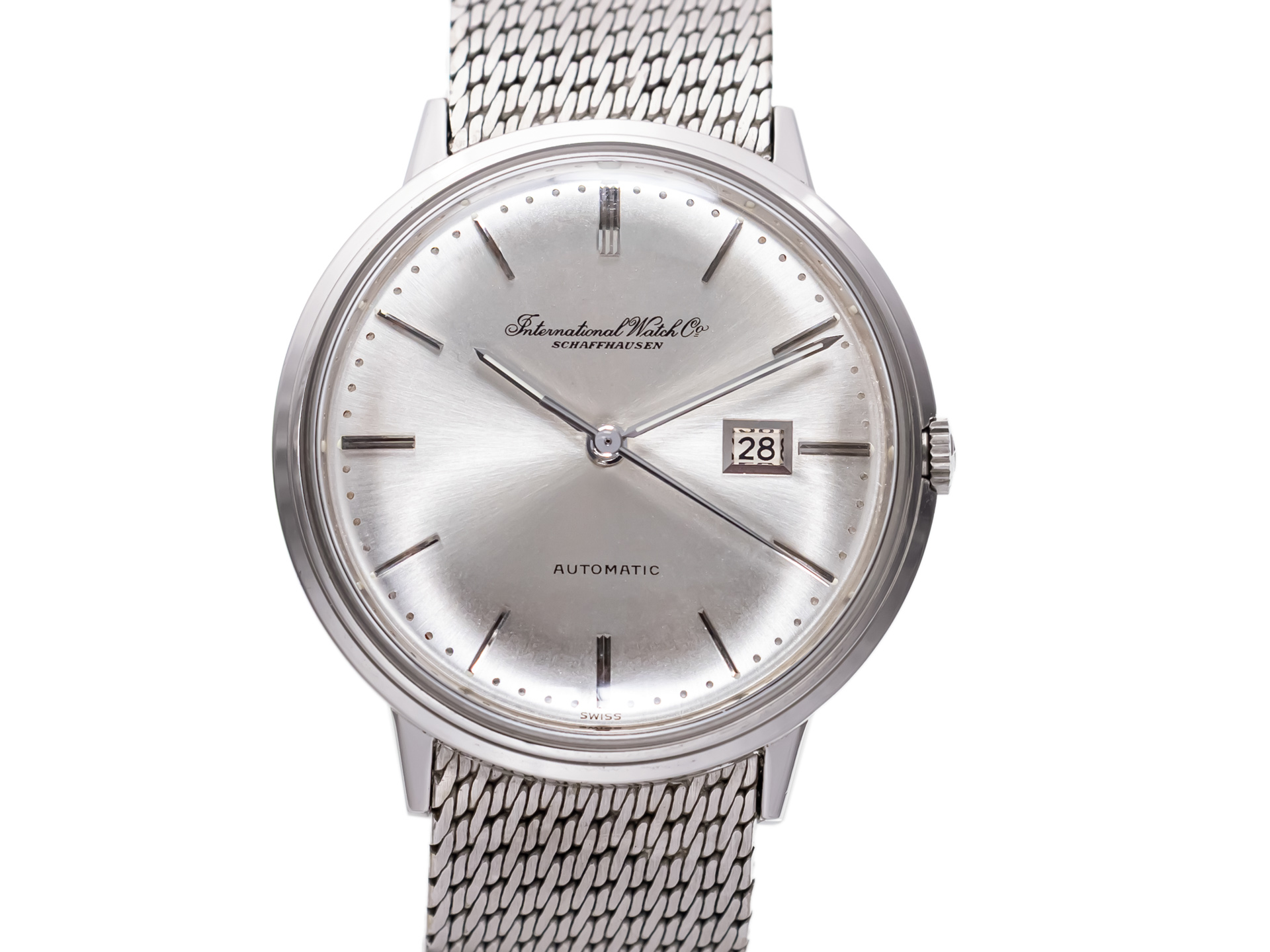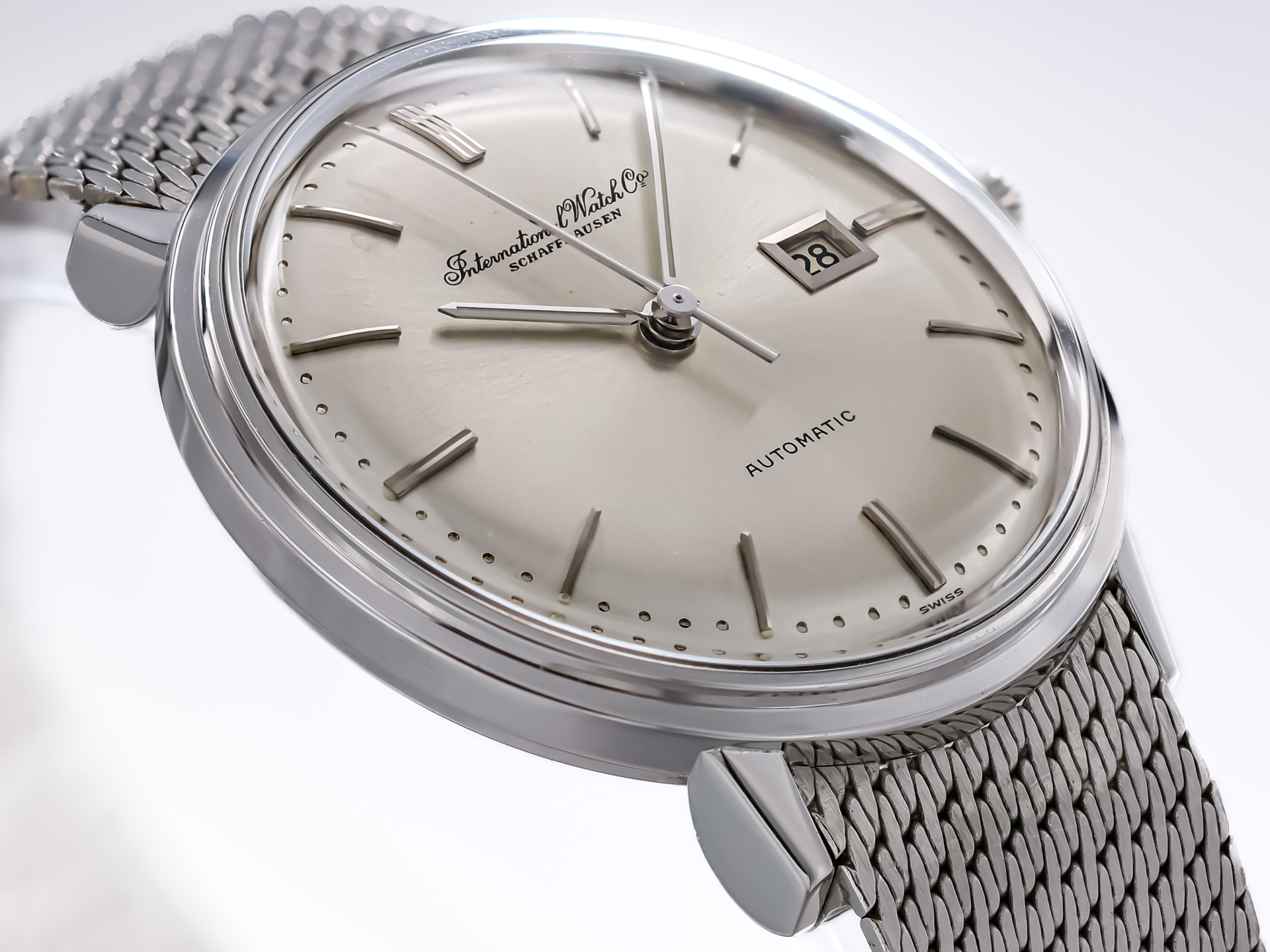 IWC Vintage Automatic Gentleman Watch 34mm Ref 1818 !8k White Gold Detachable Milanese Bracelet Papers Bj-1965 Mint