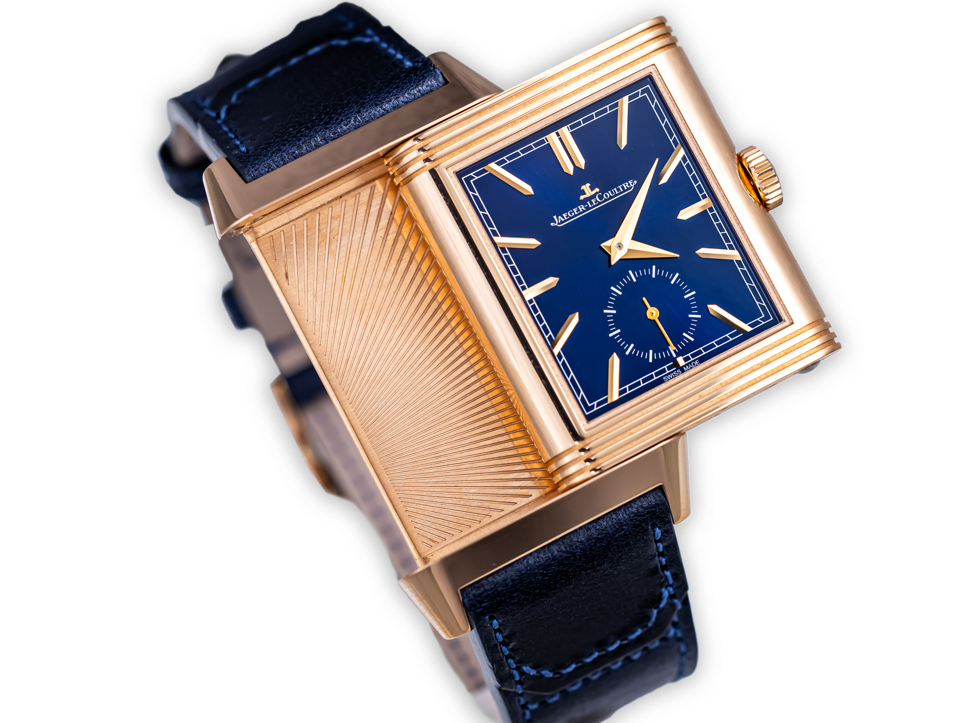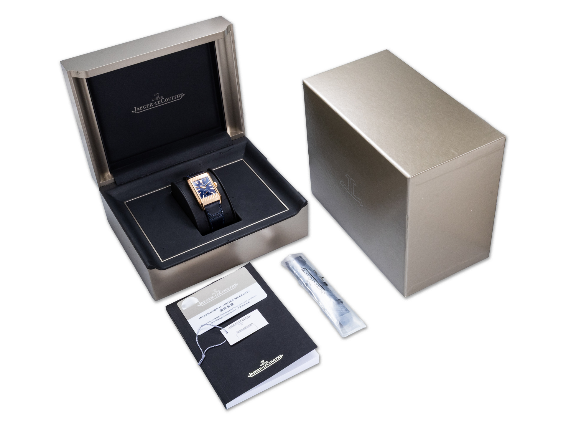 - additional leather strapThis Reverso Tribute Duoface Small Seconds brings together heritage, craftsmanship, and modern utility. Its dual-dial design, meticulous finishing, and elegant rose gold case make it one of the most compelling and collectible modern Reverso models!