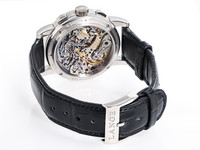 Powering this masterpiece is the famed manual-wind Caliber L951.1 — a movement that has achieved near-mythical status among collectors. Comprising 405 components, it features a column-wheel mechanism, jumping minute counter, flyback function, and a 36-hour power reserve. Visible through the sapphire caseback, it reveals the full artistry of Lange: German silver plates, hand-engraved balance cock, gold chatons, and flawless anglage throughout.