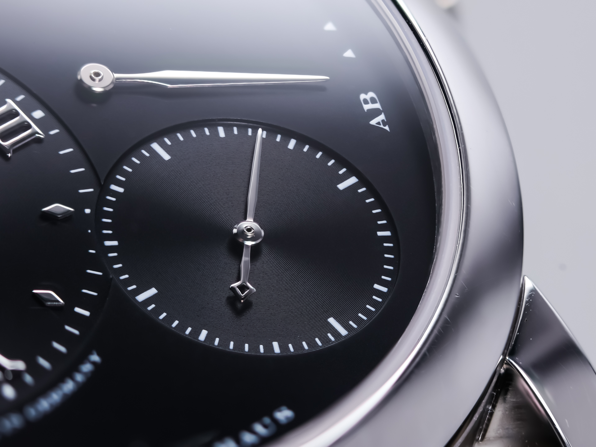 The elegant black dial features the iconic off-center time display, large date complication, and power reserve indicator. This highly legible and thoughtfully arranged design has become one of the most recognizable aesthetics in modern haute horlogerie.